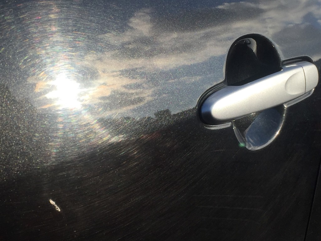 駐車場に停めた時、周りのクルマには当たり前の様に洗車傷が見えます。勝手に写真撮っちゃいましたが、特定できる写真ではないので、許してください。
