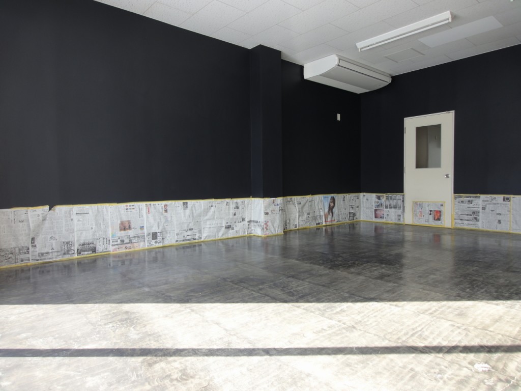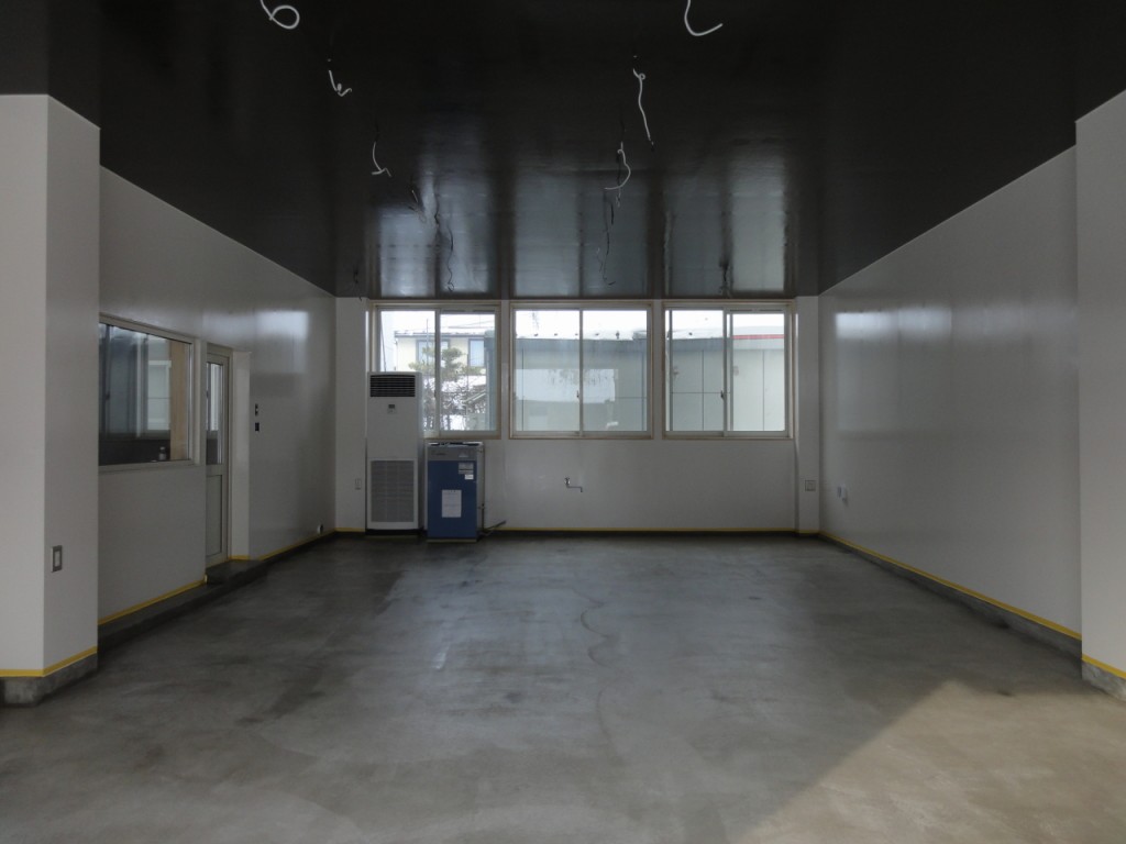 事務所側のスペースも、ようやく謎の真鍮ブラシ加工が終わり、作業場と同じ強化剤を塗りました。