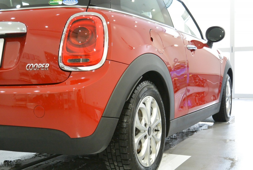 まずはミニのビューティフルコートです。一見ソリッドなのですが、実はメタリックが入った美しい赤です。新車で購入されたばかりなのですが、納車前にディーラーが付けた洗車傷が結構目立ちます。納車の際に気付いて指摘したそうなのですが、「すぐにもっと傷付きますよ。」と言われてしまったとのことです。同じ自動車業界で働く者として、謝らなければなりません。申し訳ありません!