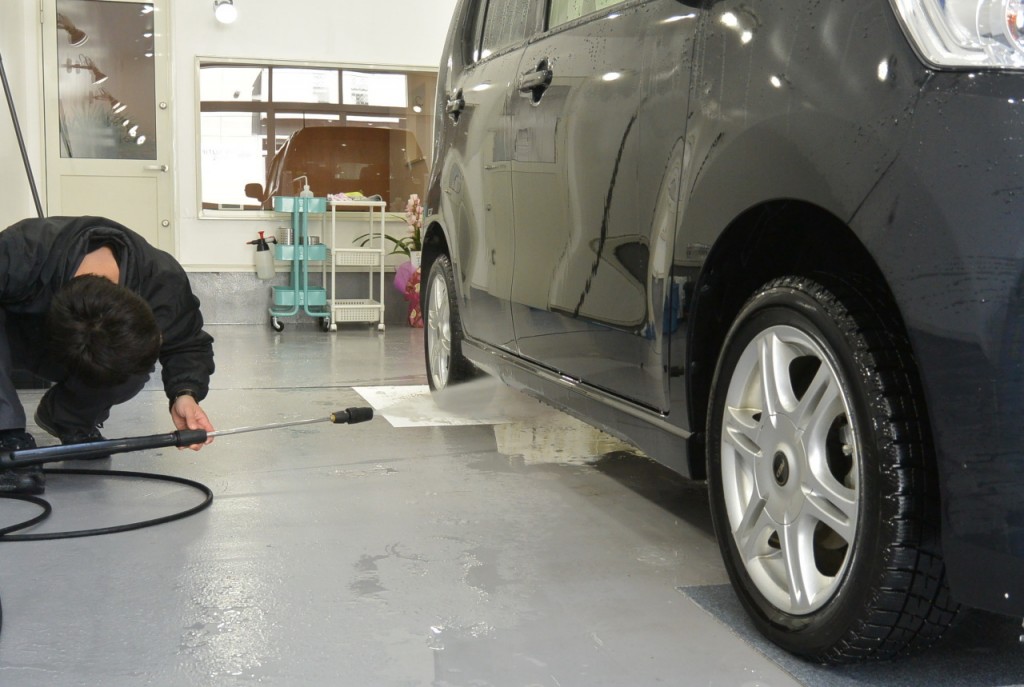 こちらは、以前にビューティフルコートを施工してくださった、ワゴンR。女性のオーナー様です。洗車でご来店くださいました。冬は凍結防止剤での錆が気になりますので、下回りも念入りに洗浄します。もちろん、サービスです^^