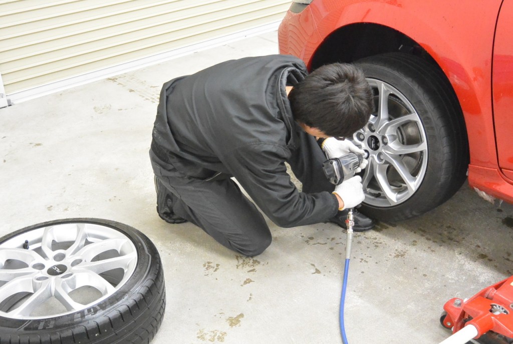 もともと装着されているホイールにスタッドレスタイヤを組みたいというオーナー様のご希望です。一度タイヤを外してタイヤ屋さんに持って行きますので…仮に当店のルーテシア号のタイヤを付けます。同じ車って便利です(笑)ちなみに私、元ルノー秋田で整備しておりまして、二級自動車整備士の国家資格も持っておりますので、ご安心くださいませ!