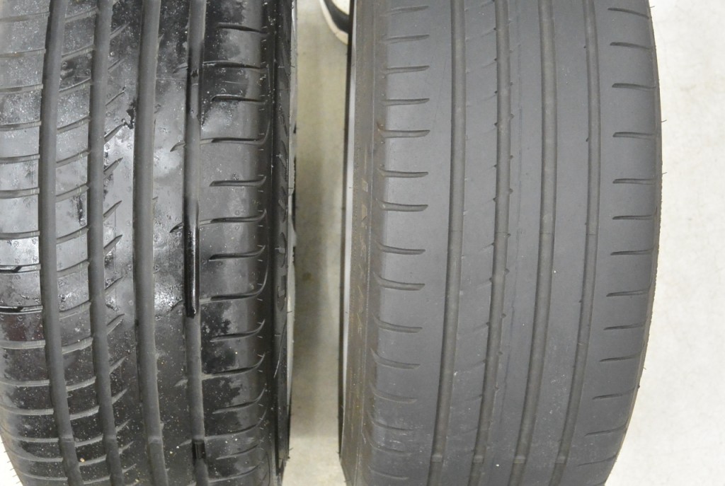 決して、汚さないように走っているわけではありません。トレッド面を見れば一目瞭然です。
