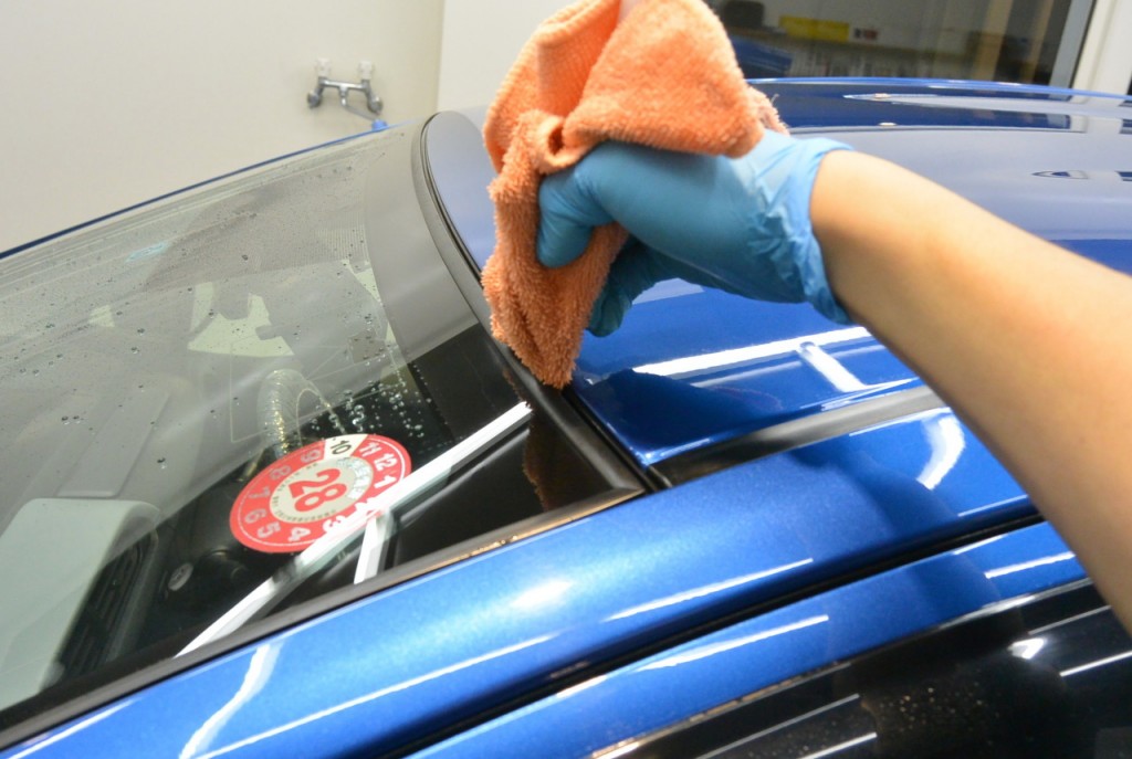 トヨタ アクア。ビューティフルコートを施工してくださっていたお車ですが、今回不幸にもお車をぶつけられてしまいました。しかし、100%相手方の過失の事故でしたので、お相手の保険を使い、当店提携の板金塗装工場で完璧に修理完了いたしました。さらに、これを機会にスタンダード研磨+グロスアーマーでさらにピッカピカにすることに。本日は下地処理洗浄を行いました!ビューティフルコートとは違い、ゴムモール脇の隙間まで、念入りに洗浄いたします。