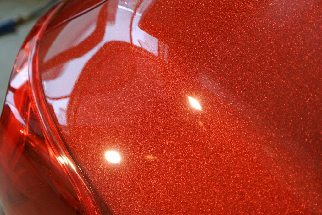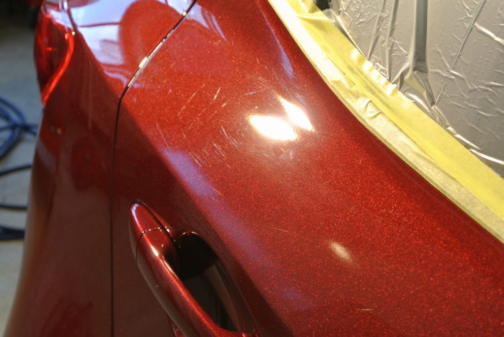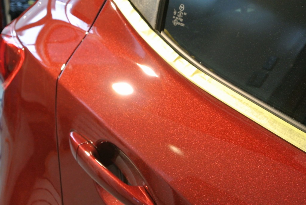 少々傷が目立ったリヤドア上部。面が取られていて、洗車の時に力が入りやすいのでしょうね。コーティングをして汚れも落ちやすいですから、今後はそっと優しくお洗いください。
