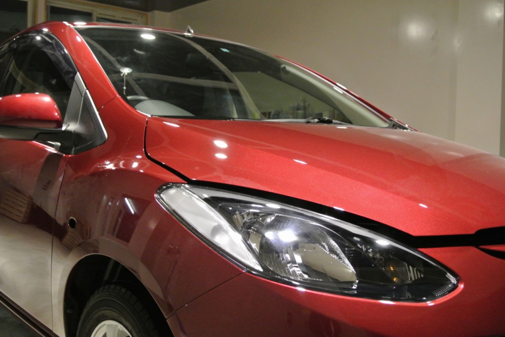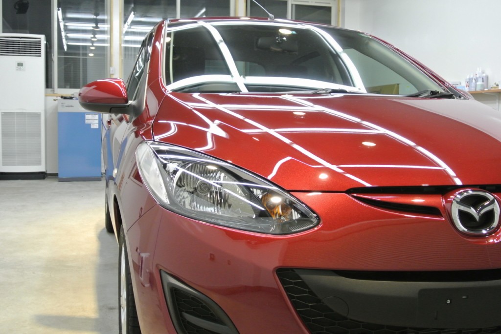 最近のマツダ車の塗装は本当に良くなりました。本当に美しいです。見えすぎる照明を当てていますので、この写真内でも数本残っている傷が確認できるかと思います。全ての傷を除去するまで塗装を薄くして磨くのではなく、美観とのバランスを取って仕上げております。毎日が難しい判断の連続です。お客様に感動していただけるように日々鍛錬です。