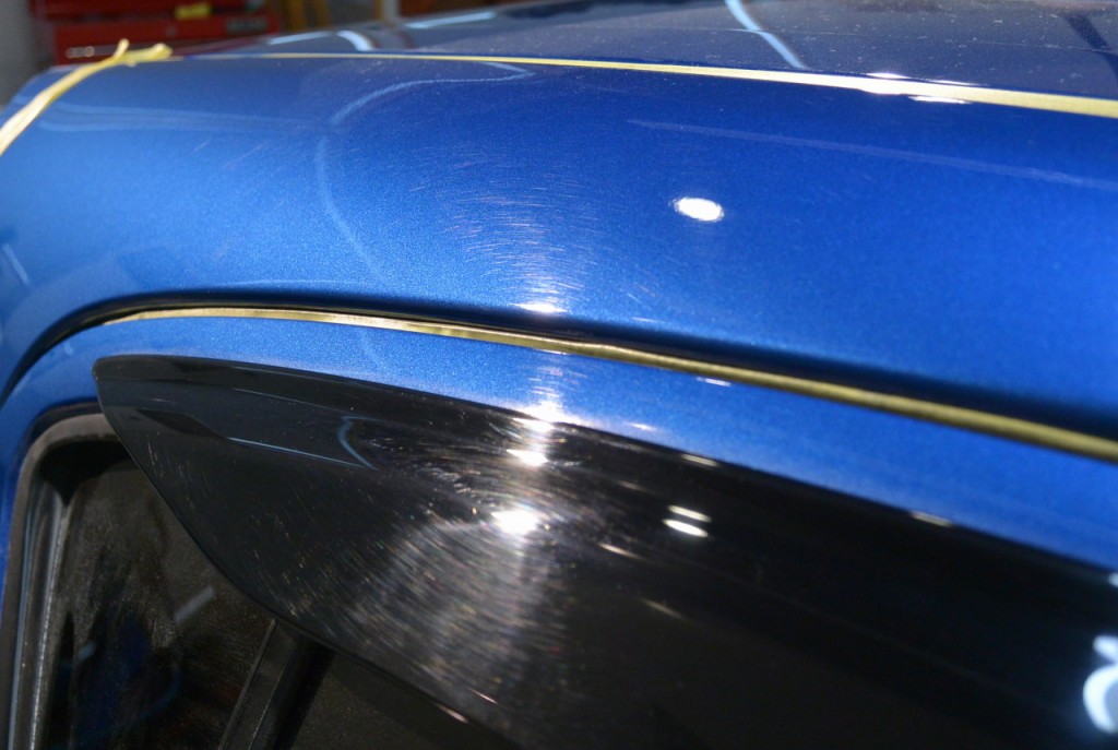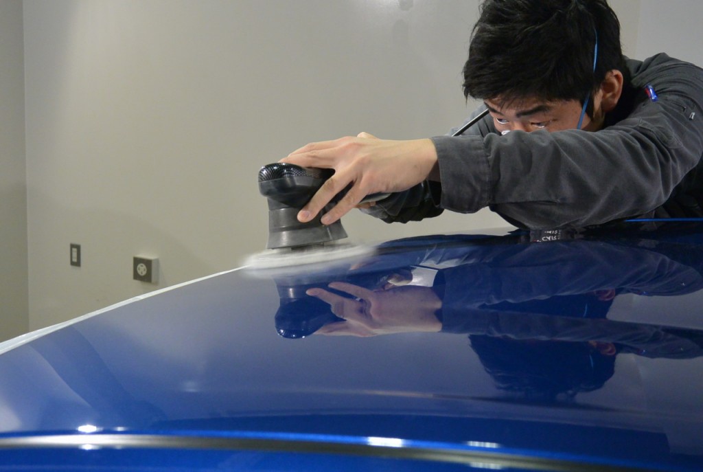 次に塗装面を研磨して、細かな洗車傷などを除去し、さらに塗装自体の光沢を最大限引き上げていきます。