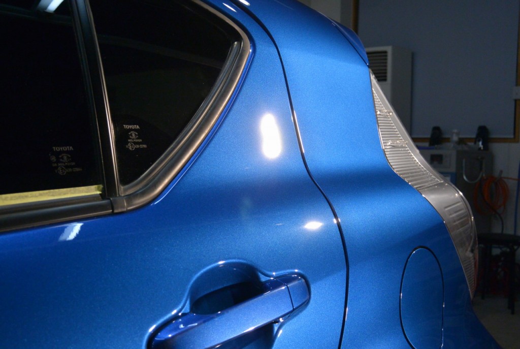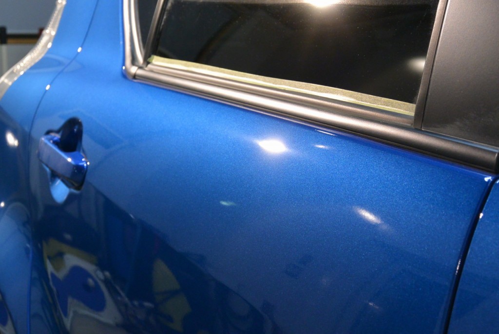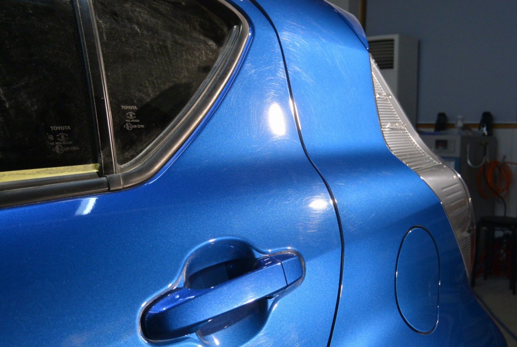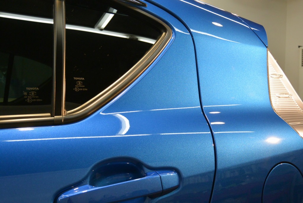 アクアのこの部分はかなりの曲面です。曲面やドアハンドルもきちんと研磨いたします。