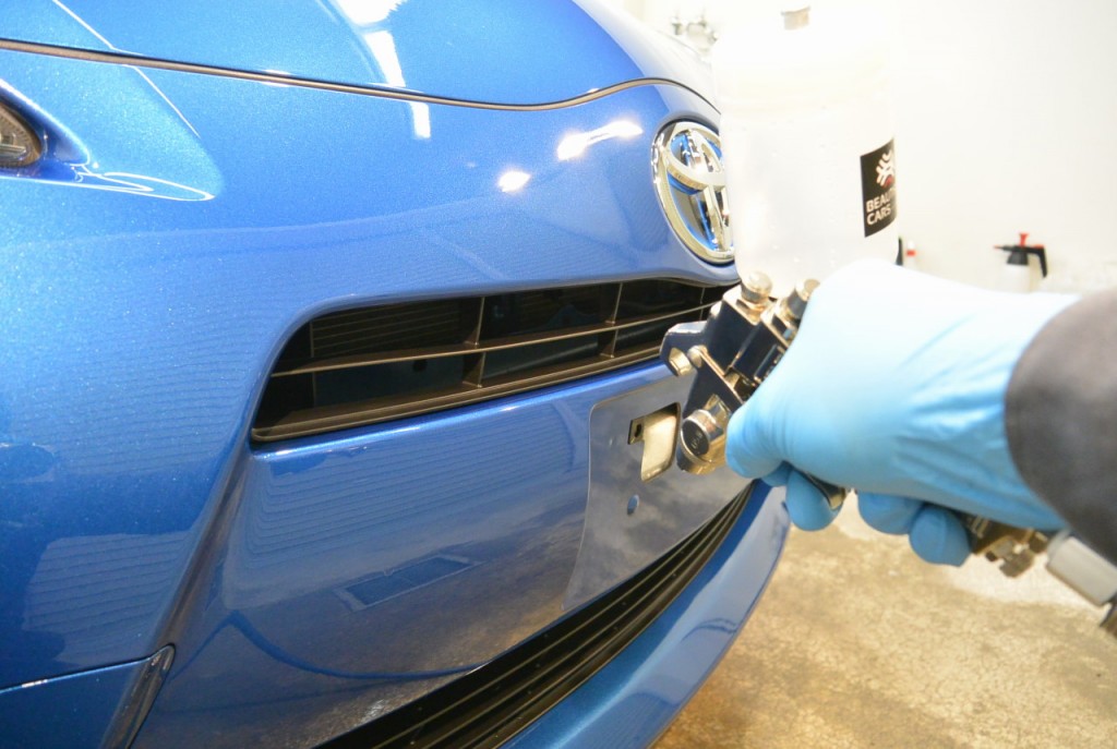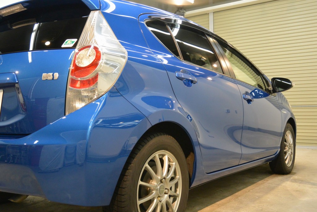 トヨタ アクア フロントバンパー修理+スタンダード研磨+コーティング(グロスアーマー)