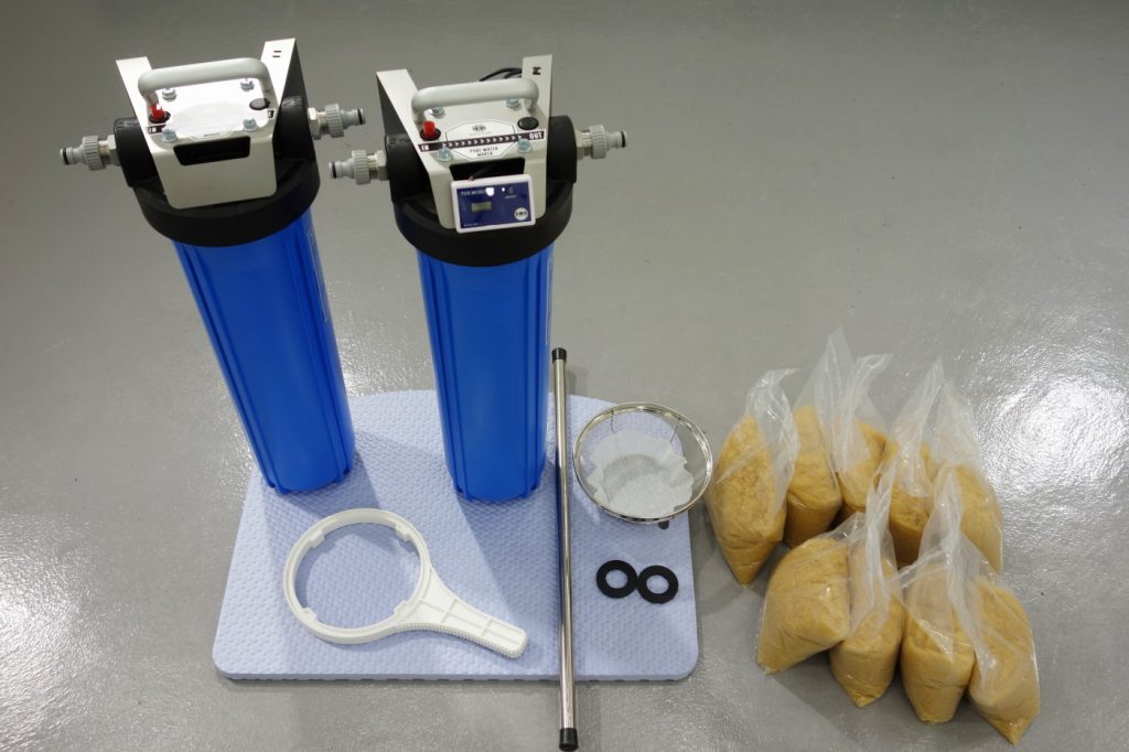 ※2019年7月 イオン交換樹脂10リットルと交換用土のう袋のセットに変更になりました。価格は9,000円(税別)から7,000円(税別)にお求めやすくなりました。