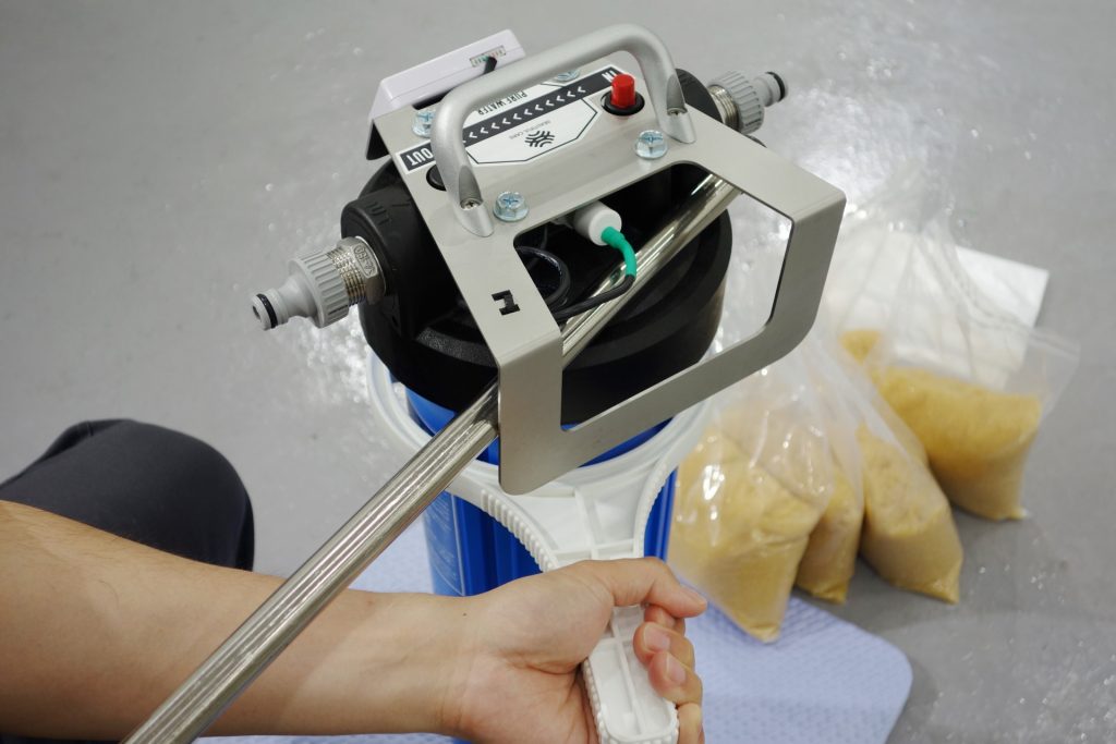 ※2019年7月以降は土のう袋で楽に交換していただけます。(写真は2代目純水器です)