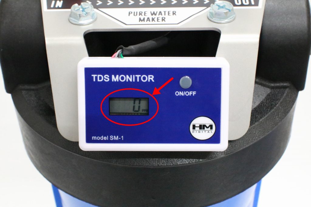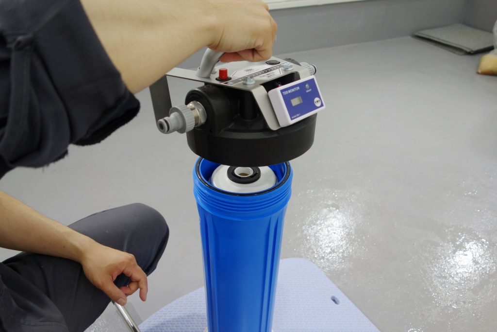 水を出している状態でTDSメーターの数値が1ppm以上を表示するようになったら、イオン交換樹脂の除去能力が間もなく無くなります。この後急速に数値が上がりますので、速やかにイオン交換樹脂を詰め替えされることをお勧めいたします。