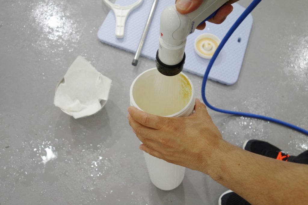 同様にもう1本も詰め替えを行ってください。これでイオン交換樹脂の詰め替えが完了いたしました!また純水洗車をお楽しみくださいませ(^^)