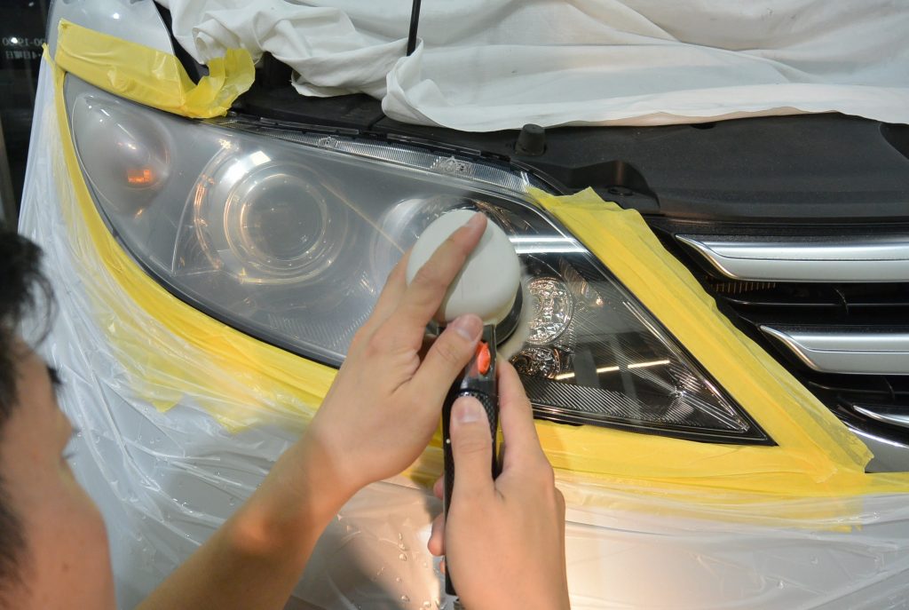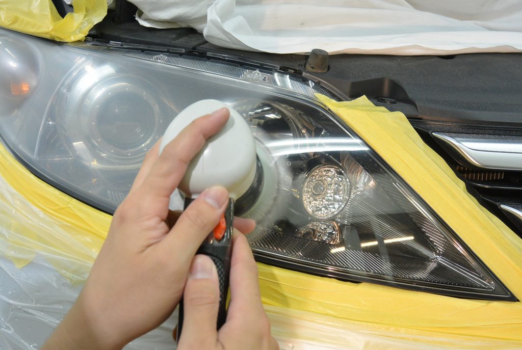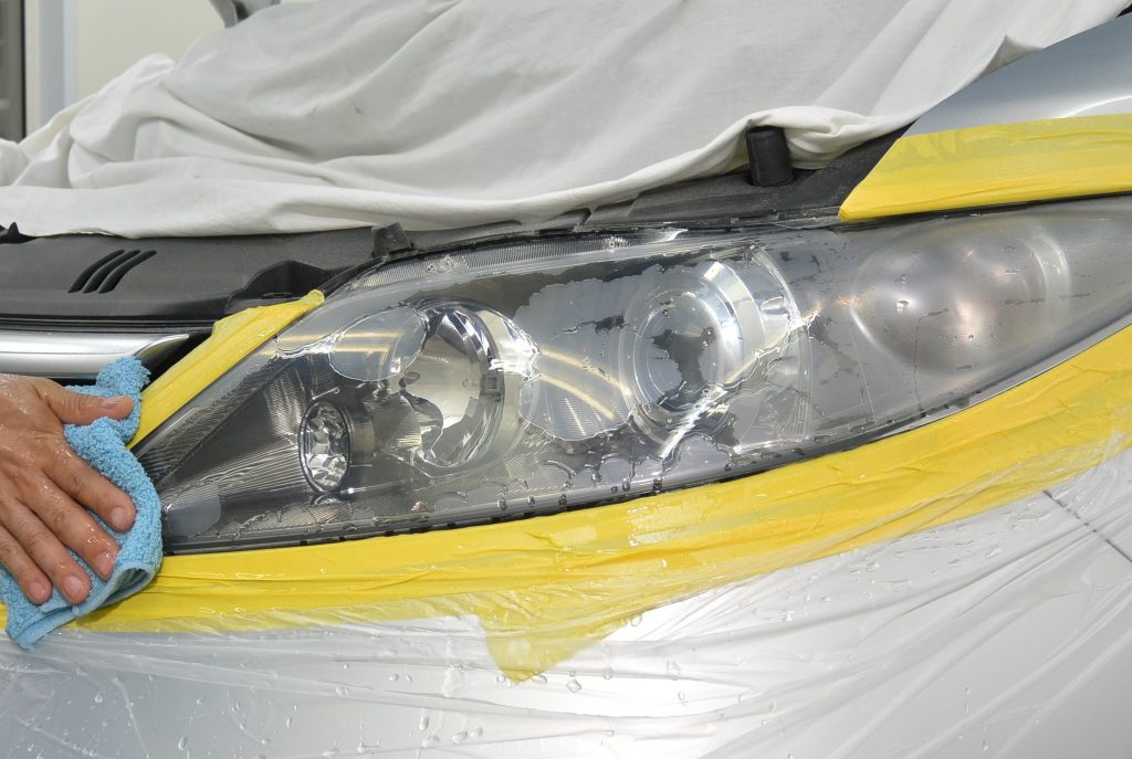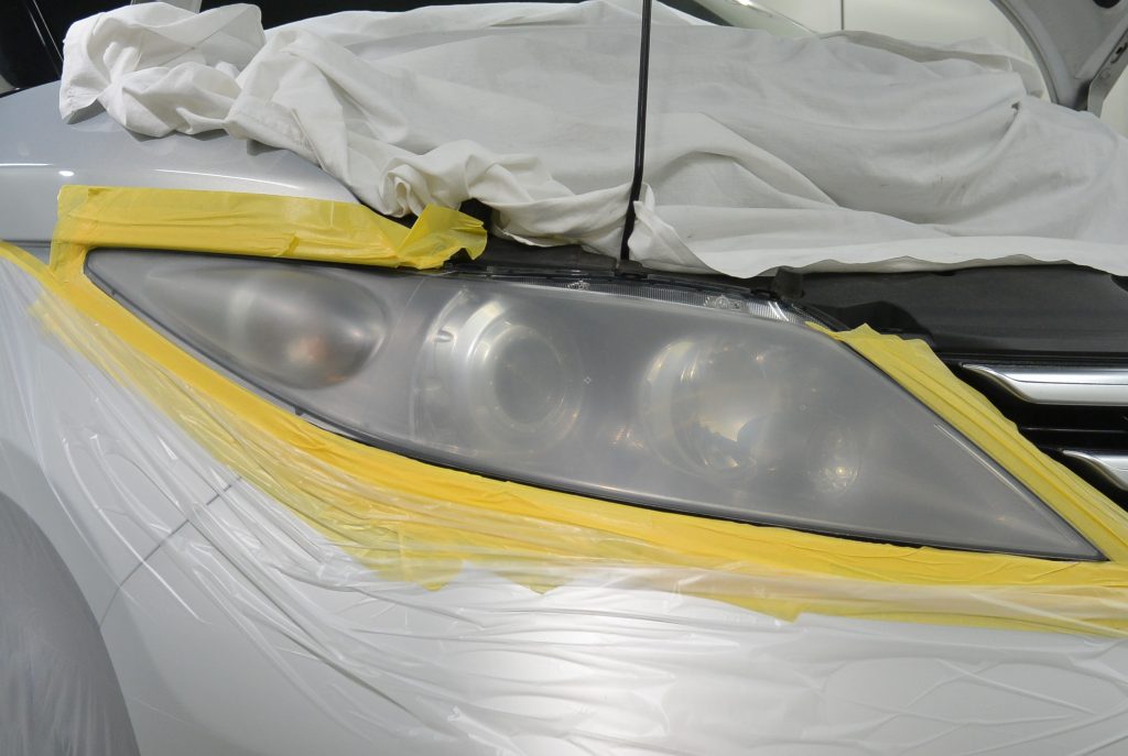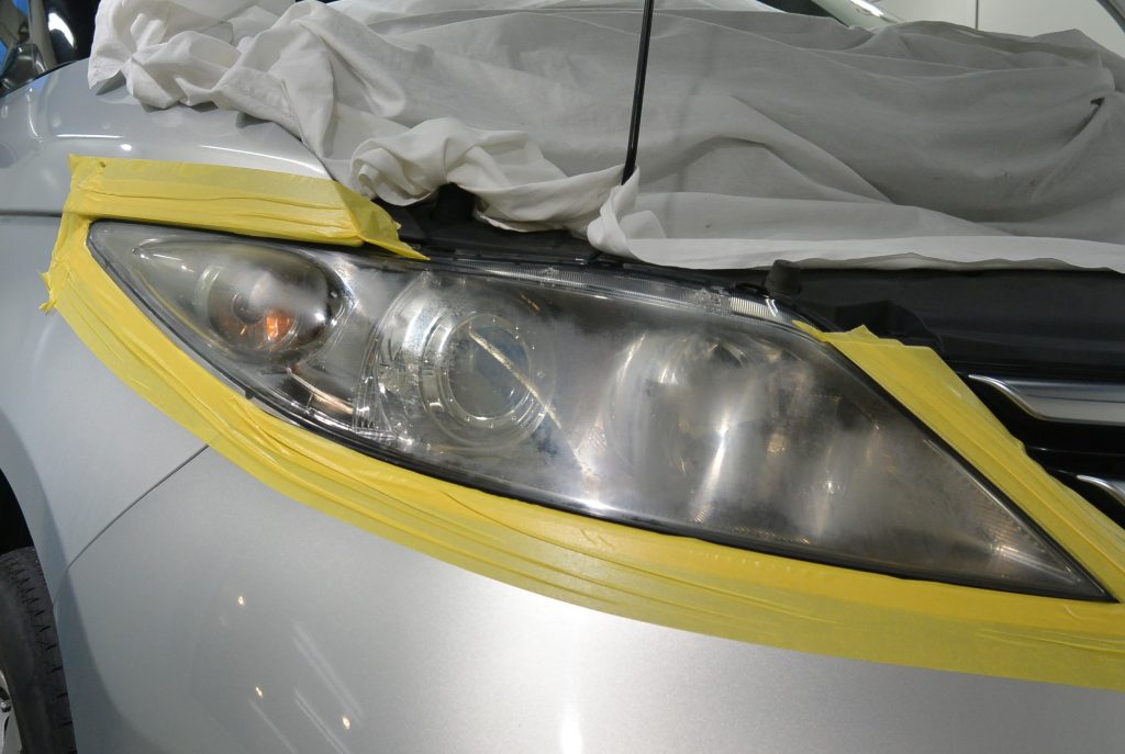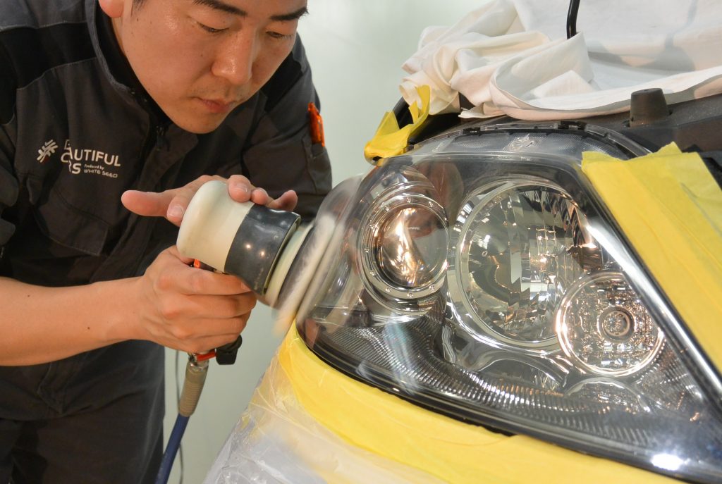 仕上がりを見て、オーナー様も大変喜んでくださいました。今後ですが、専用のコーティングで保護はしておりますが、もともとのライト表面のハードコートとは違いますので、1年ほどで若干黄ばみが出てきます。しかし、その際は、酷くなる前でしたら、軽く研磨して再コーティングいたします。今回の施工は片側14,000円(税抜)ですが、再コーティングは4,000円(税抜)で承ります。リペアには色々な方法がございますが、仕上がりの美しさと費用を考え、当店はこの方法をとっております。