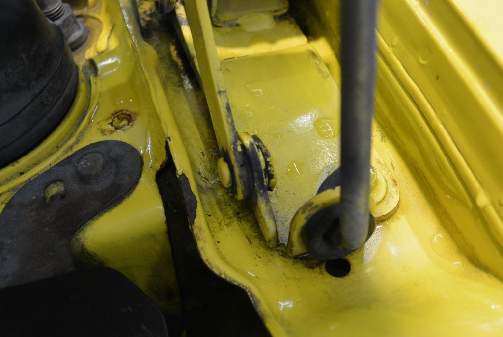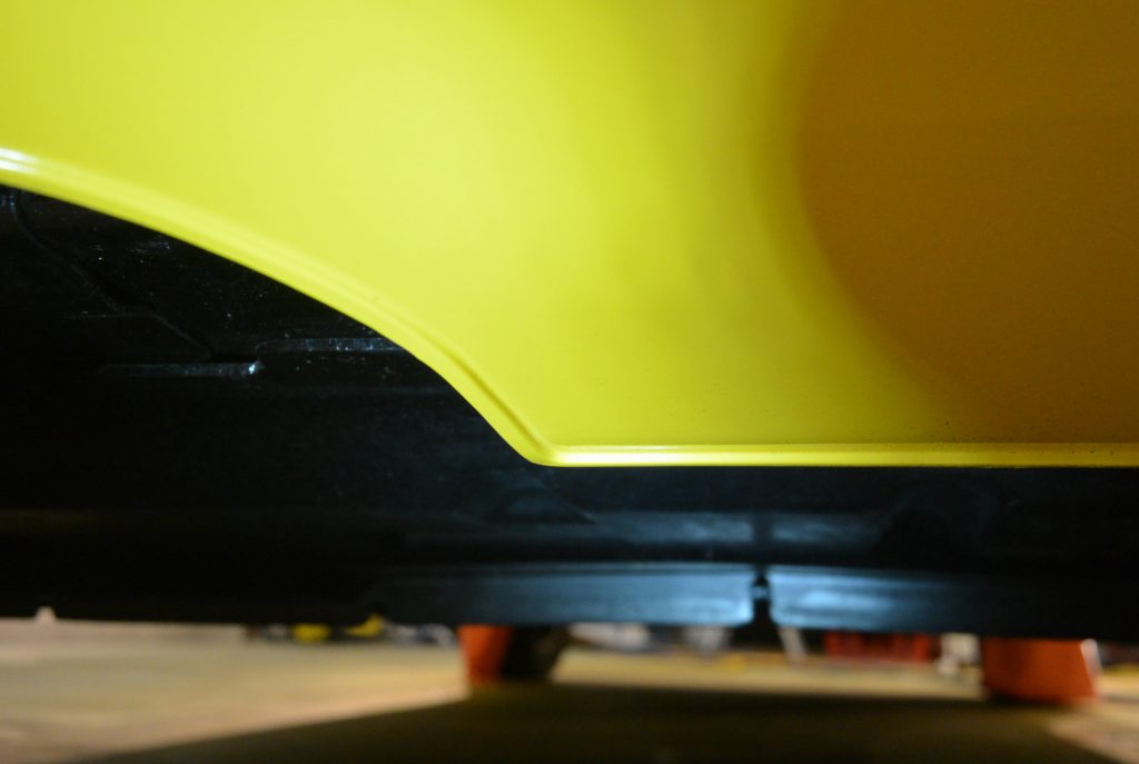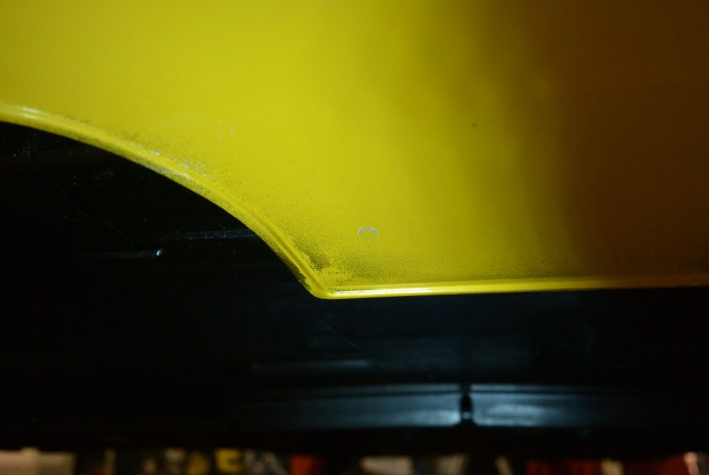 覗き込まないと見えないところも綺麗にいたします。この黒い汚れはフロントバンパー下部にはみ出した防錆塗装です。