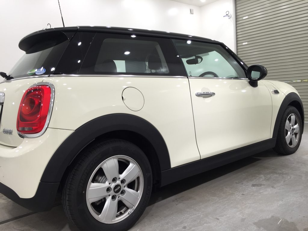 コーティングブースでは、軽研磨+グロスアーマー+ホイールコーティングでご用命のMINI クーパーが入庫いたしました。オーナー様、仕上がりを楽しみにしてお待ちくださいませ!