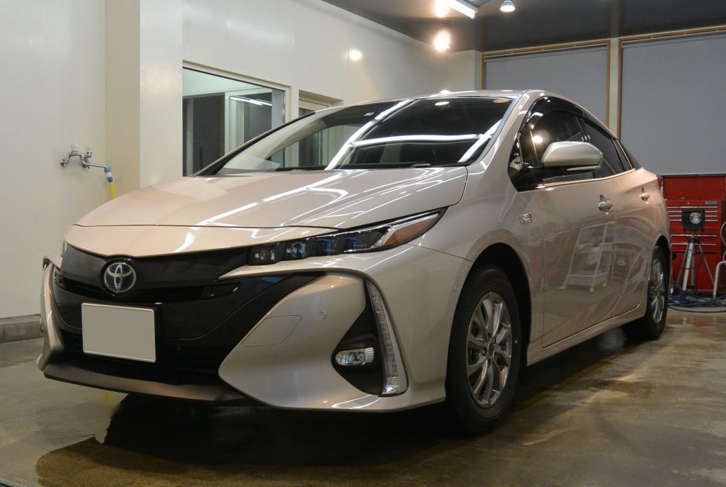 トヨタ プリウスPHV、極艶ビューティフルコート+全面ガラス撥水コーティングのご用命でご入庫いただきました。