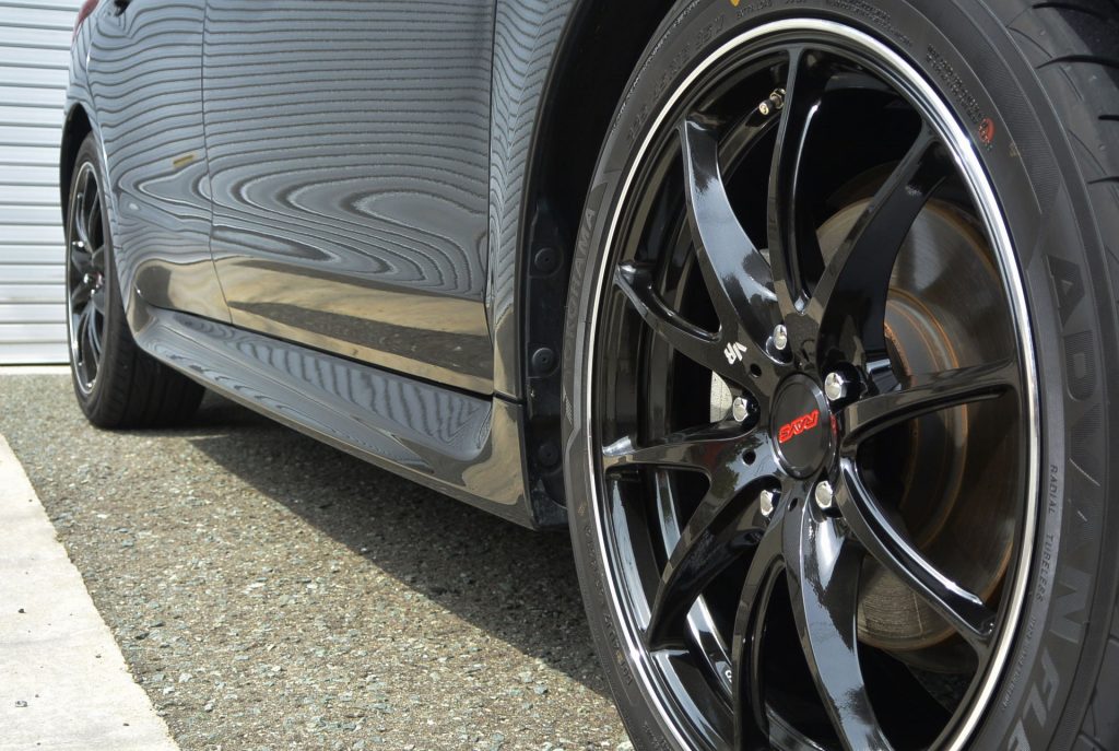 スバル レヴォーグ、手洗い洗車+VOLK RACINGホイールコーティングでご入庫いただきました。ホイールは購入して一週間の新品です。すでに装着されていましたが、小さな汚れも逃さないよう、可能な限りしっかり洗浄した後にコーティングさせていただきました。