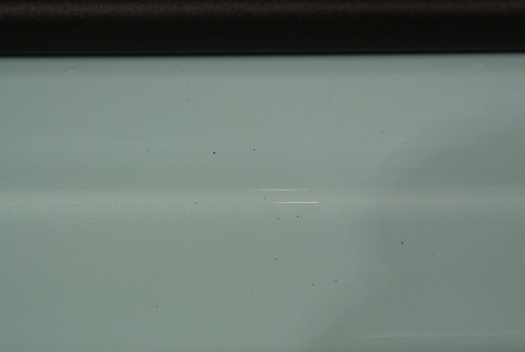 オーナー様に、「洗剤で除去できないこと」「物理的に除去すると、傷が入ってしまう可能性があること」をお伝えし、「傷が入ったとしても、除去してほしい」というご希望をお伺いし、除去作業に入りました。一般的に、塗料ミストの除去にはトラップ粘土を使うのですが、必ず細かな擦り傷が入ってしまいます。シンナーなどの溶剤で溶かしますと、塗装も侵してしまいます。今回は塗装研磨を行いませんので、そういった悪影響を出さないよう、異物除去用のラバーを使い除去しました。結果として、傷を付けずに綺麗に除去することができました。