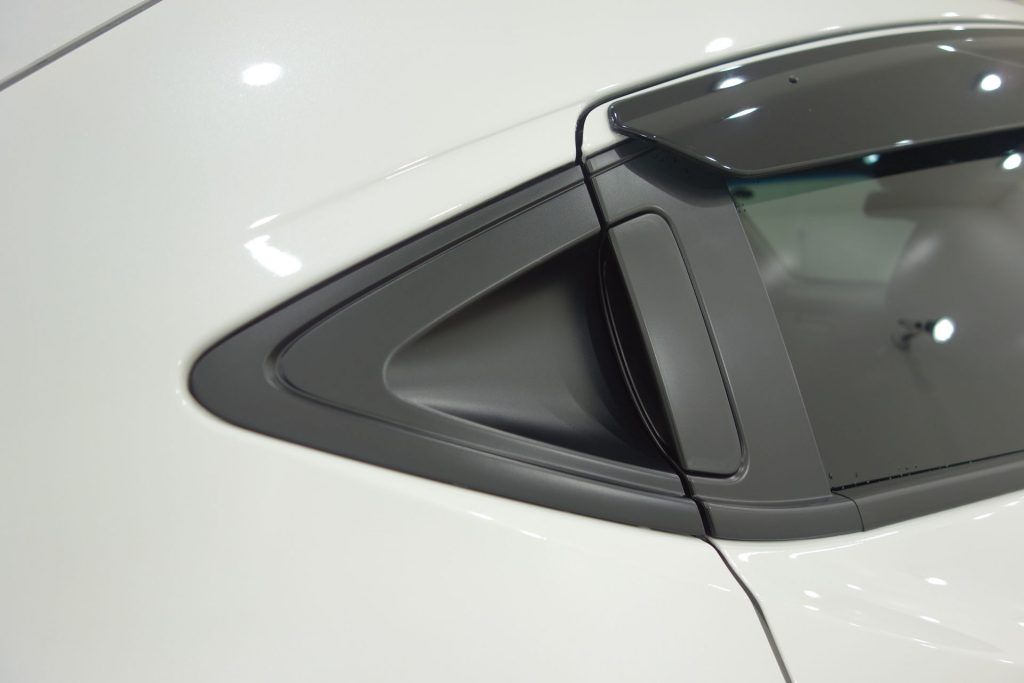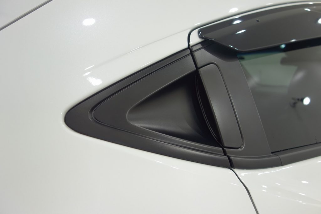 ホンダ ヴェゼル。オーナー様より「新車を購入したので綺麗に乗っていたい。」とのことで、極艶ビューティフルコートのご用命をいただきました。新車で一見綺麗でしたが、水ジミなどの汚れが付着していました。水ジミは、水道水を乾かすとできるもので、新車であっても、納車までの間に洗車をされるので、その際に付いてしまうことが多いです。また、屋外の新車置き場で長期間保管されることもあり、この場合も砂埃と雨が混じり、水ジミなどの汚れになってしまいます。水ジミは普通の洗車では落ちませんが、当店では専用の洗剤で溶かして優しく除去します。ですので、コンパウンドで擦って落とす通常の水垢落としの様な物では綺麗にできない、無塗装の樹脂パーツなども、綺麗にすることができます。さらに、極艶ビューティフルコートも、無塗装の樹脂パーツにも施工できます。