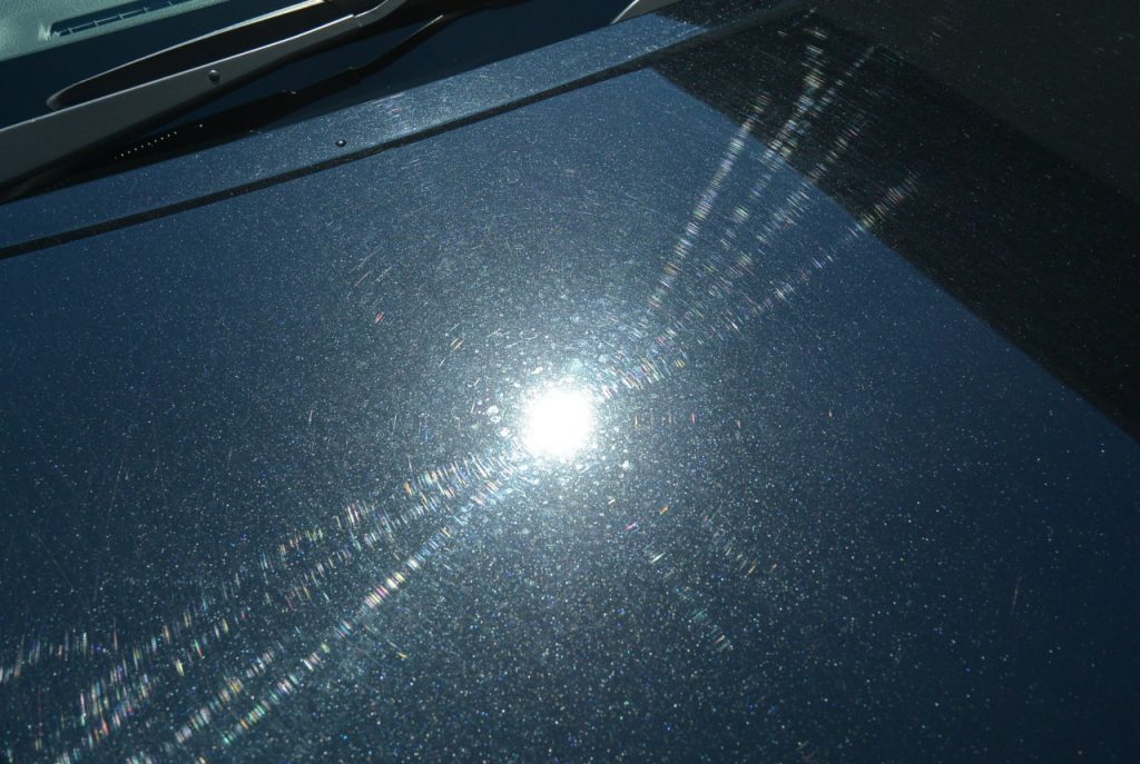 太陽以外でも明るいライトなどが当たると、細かな洗車傷が良く見えます。