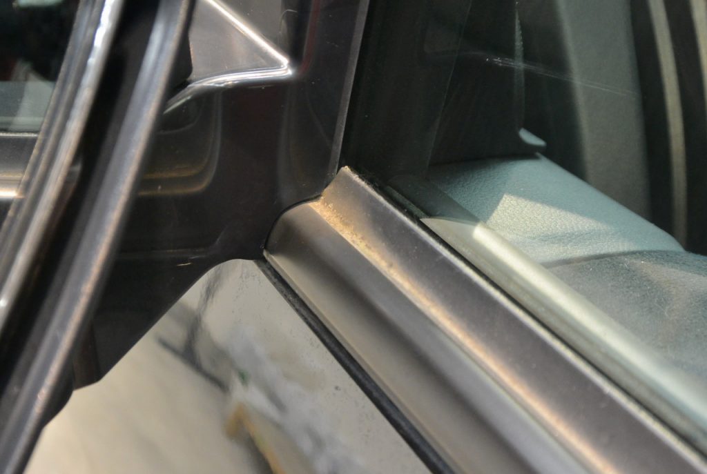 ドアモールの上ギリギリのスケール汚れ。
