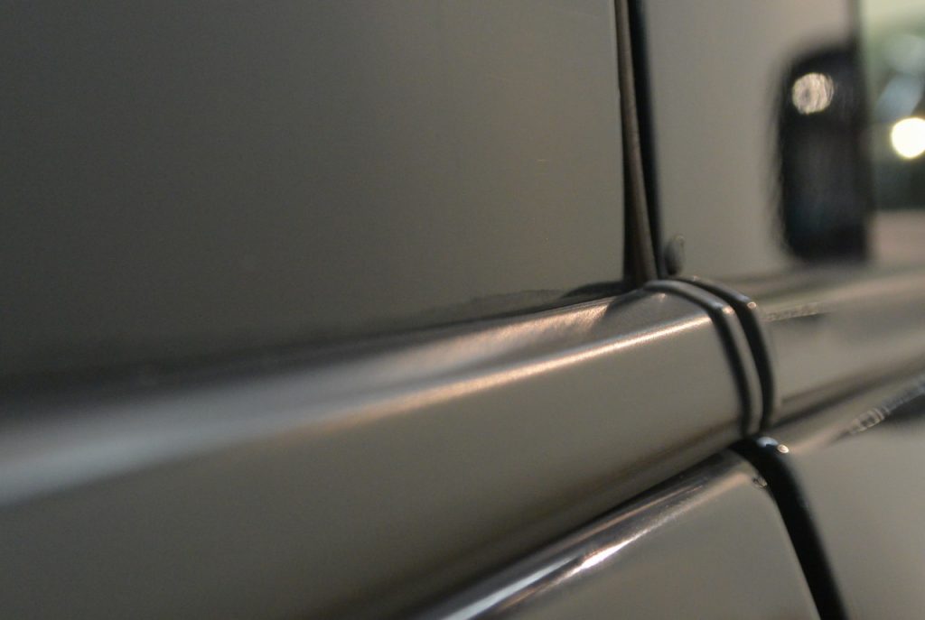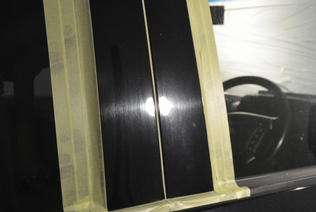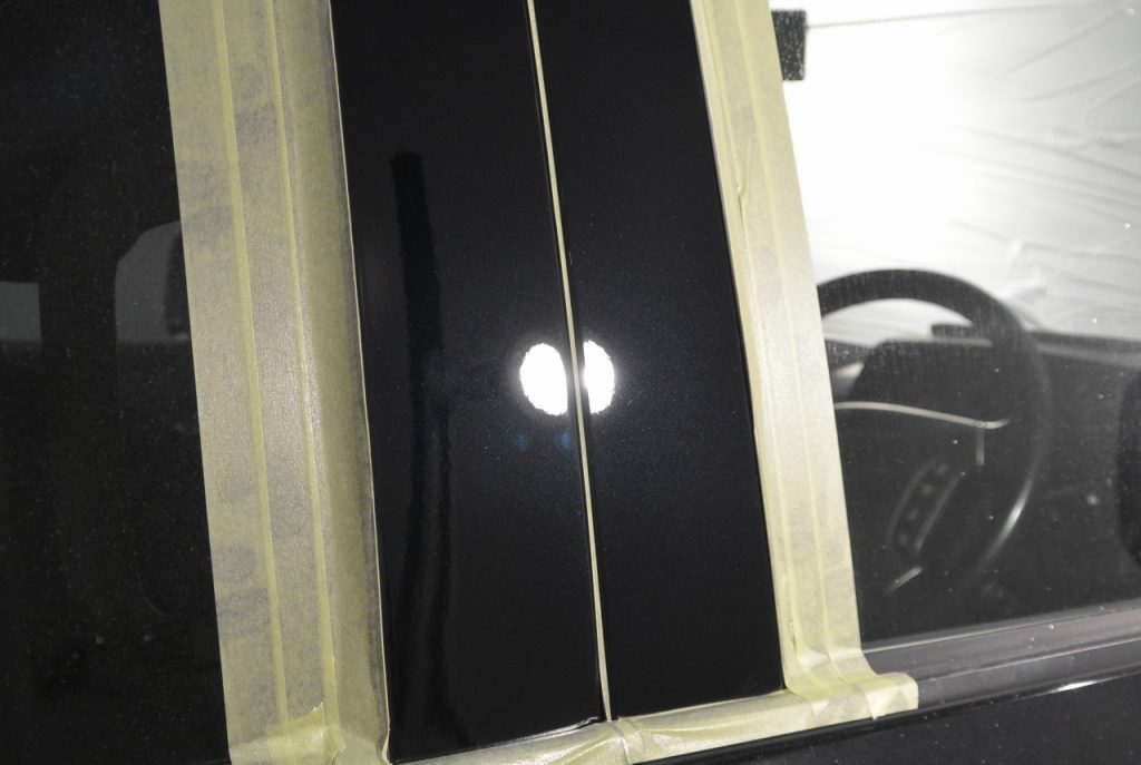 側面はこんな感じです。当店の研磨剤は、水と研磨粒子だけ。すべりを良くするためのシリコンや界面活性剤などは入っていませんので、研磨粒子で付いた跡が埋まって見えなくなることもなく、リアルに研磨後の状態を確認しながら施工することができます。