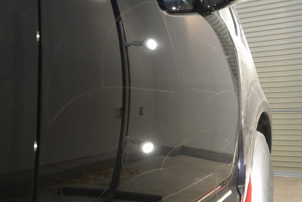 徹底的な洗車、洗浄が終わると、次は塗装面の研磨です。