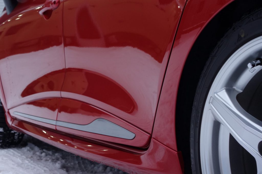 写真はコーティング後屋外保管で3年半が経過した当店デモカーのルーテシア号。凍結防止剤の汚れも、さっと洗えばこのとおりピッカピカです。一体いつ再施工すれば良いのでしょうね(笑)