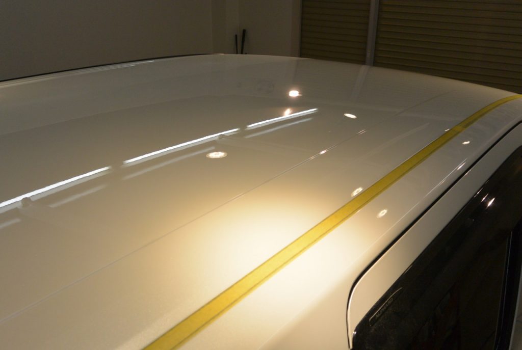 このおクルマは、3年前に当店でコーティングしてくださって、今回2回目の研磨+コーティングの施工です。コーティングが塗装面を保護してくれていたので、塗装がとても良い状態で、研磨すると、新車を磨くよりも綺麗なくらいに仕上がります。