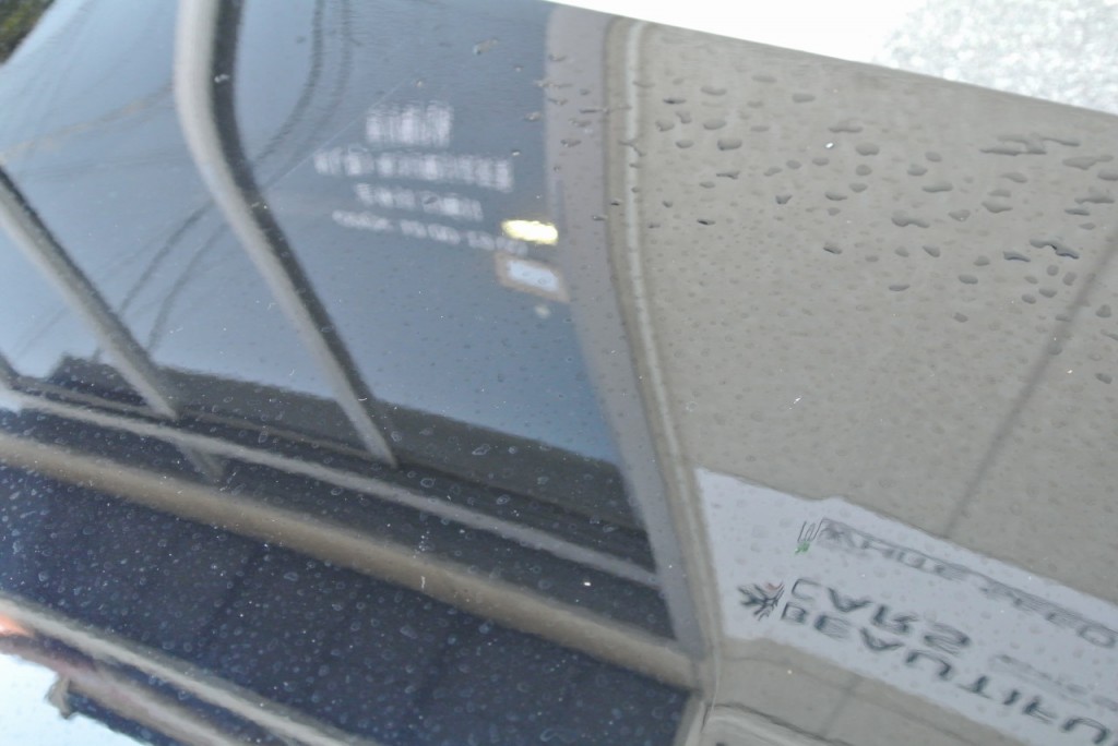 「なんで雨にあたってもこんな跡がつかないのか?」という疑問もあると思います。雨は一度蒸発した水が降ってきていますので、含まれるミネラル分が非常に少ないからなんです。酸性雨など、汚染された雨であれば塗装を痛める事になりますので、絶対安全。という訳ではありません…。