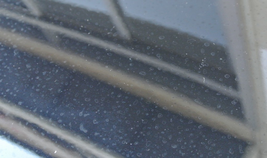 虫や鳥の糞などがついてしまい、コイン洗車場などで、水を吹きかけ水分をそのままにしてしまう事があるかと思います。コイン洗車場などでは、水道水ではなく、地下水を使っている事もあります。一般的に地下水にはさらに多くのミネラルが含まれているため、その場合、さらに酷いイオンデポジットができてしまいます。