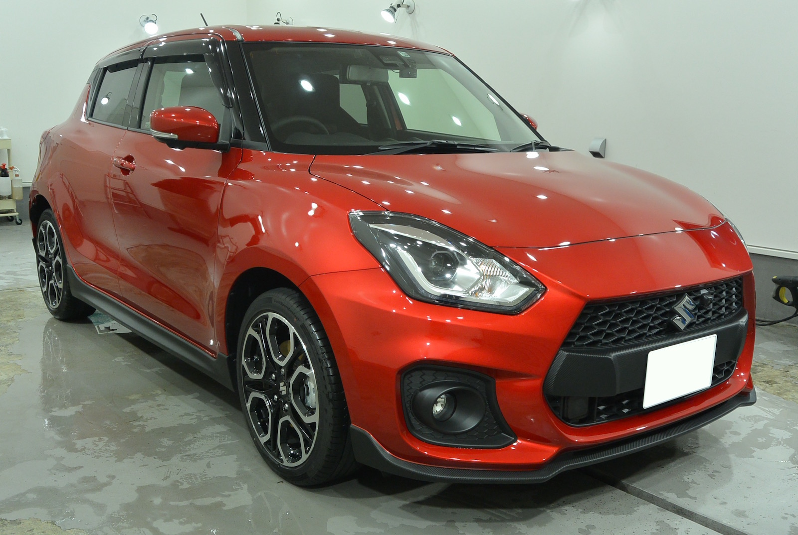 本店です。スズキ スイフトスポーツ。極艶ビューティフルコートのご用命でご入庫いただきました。