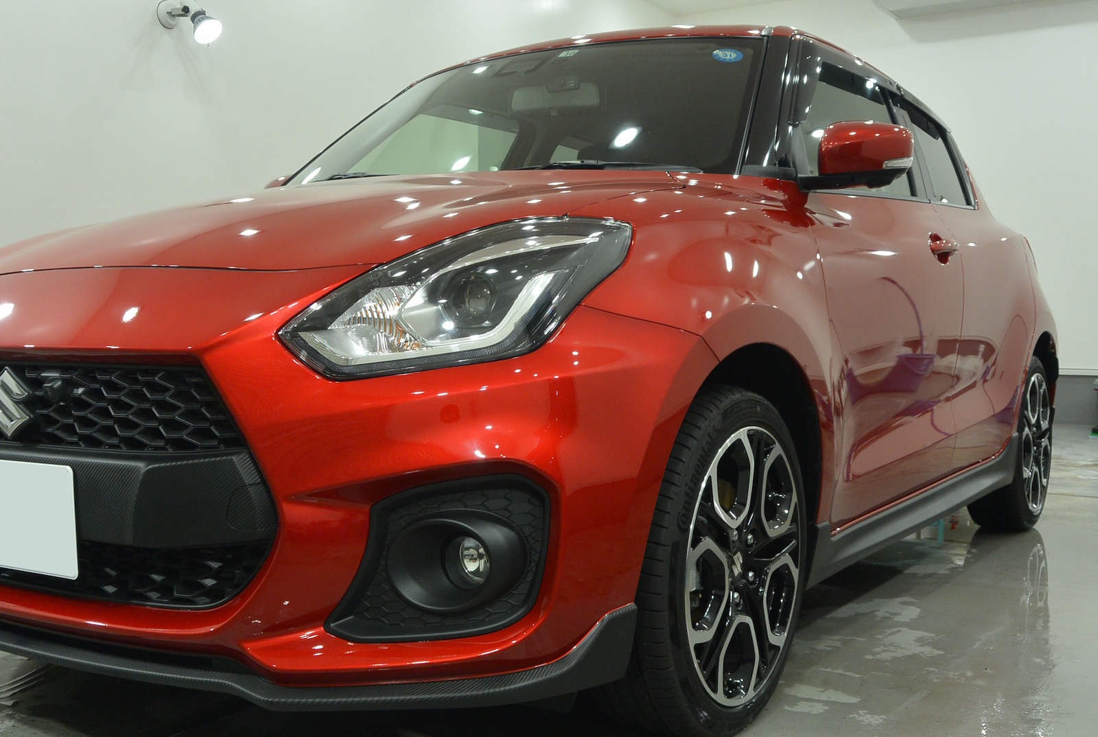 以前別なおクルマでヘッドライトコーティングをさせていただいたお客様です。スイフトスポーツを新車でご購入されたとのことで、極艶ビューティフルコートのご用命をいただきました。