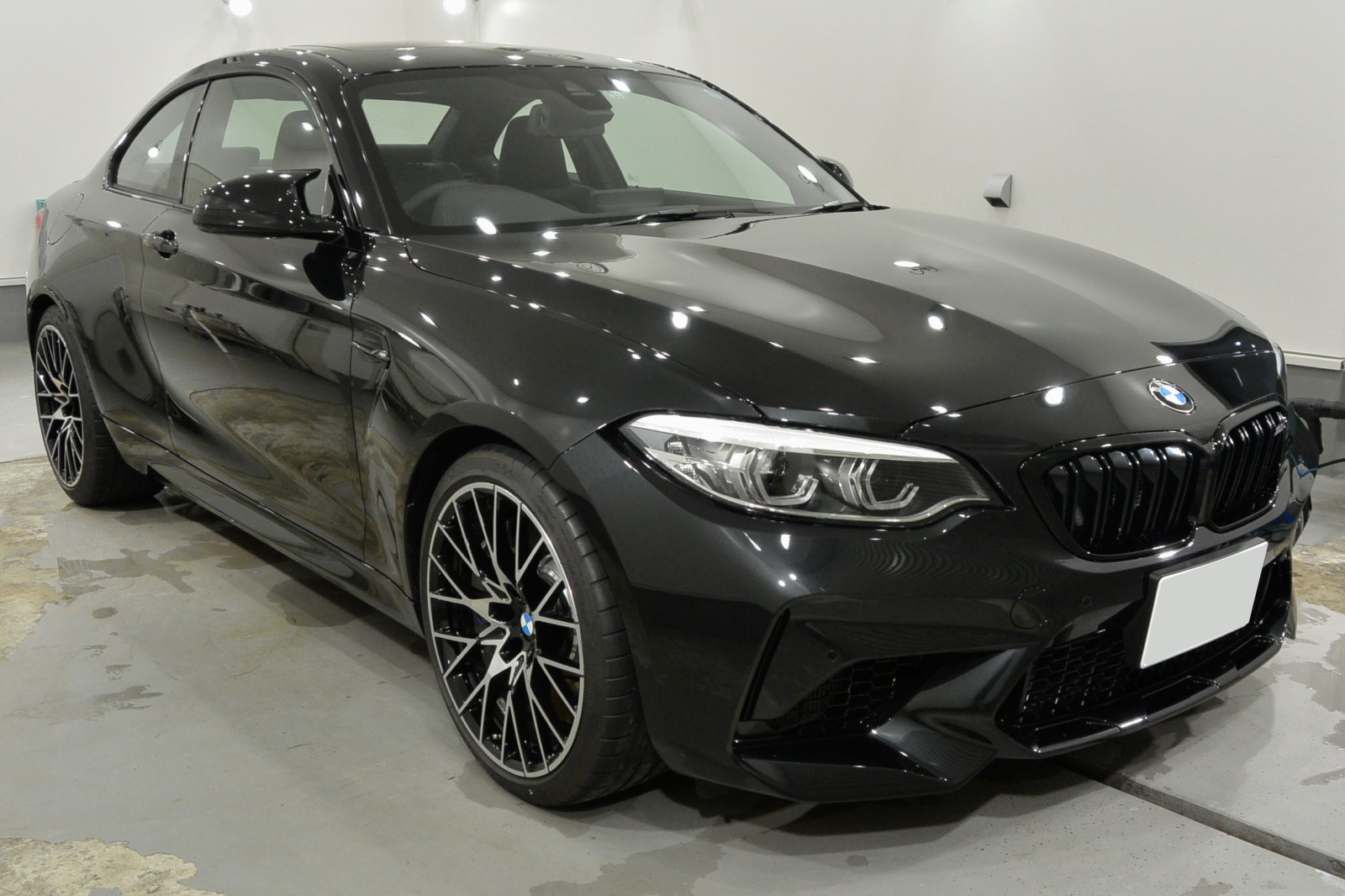 本店です。BMW M2 コンペティション。極艶ビューティフルコートのご用命でご入庫いただきました。
