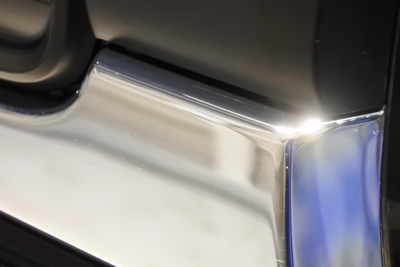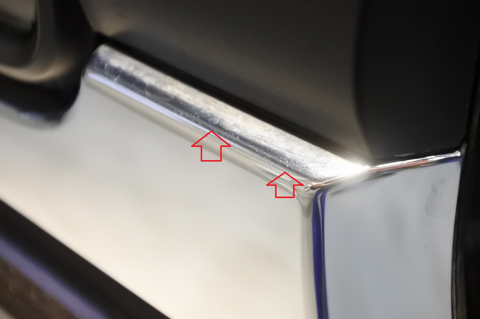 新車であっても、納車前の洗車で水道水が乾いて水ジミが残っていることが多いので早速チェックいたします。