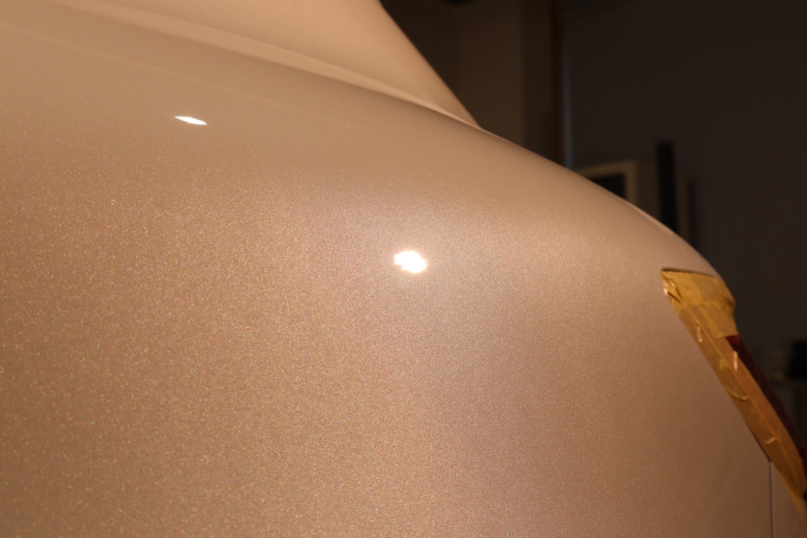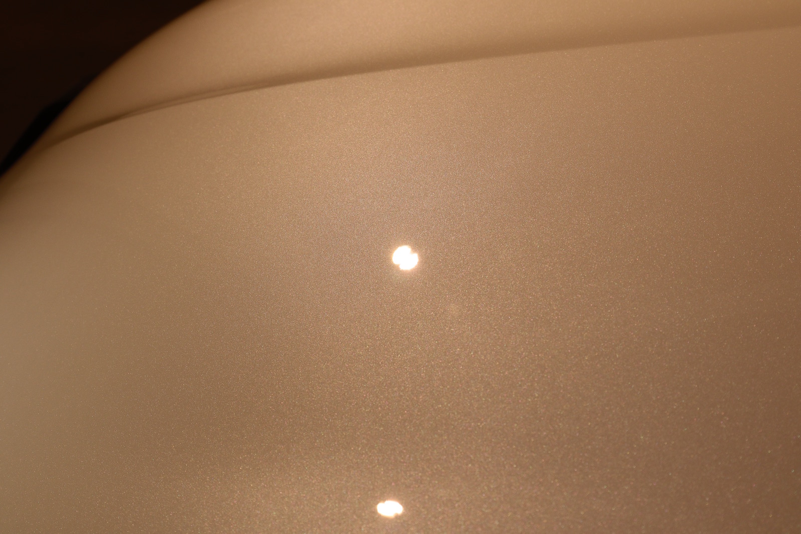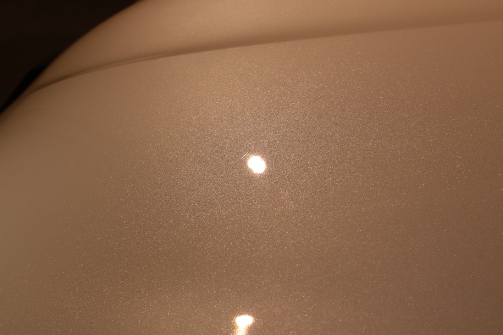 しっかり研ぎ上げることで、ぼんやりと写りこんでいた研磨用ライトがくっきりと写りこみ、多少付いていたキズも無くなりました。美しいです!ビューティフルカーズが採用している研磨方法では、研磨する厚さは1ミクロン程度で、ごく僅かですので塗装を痛めてしまう心配もありません。