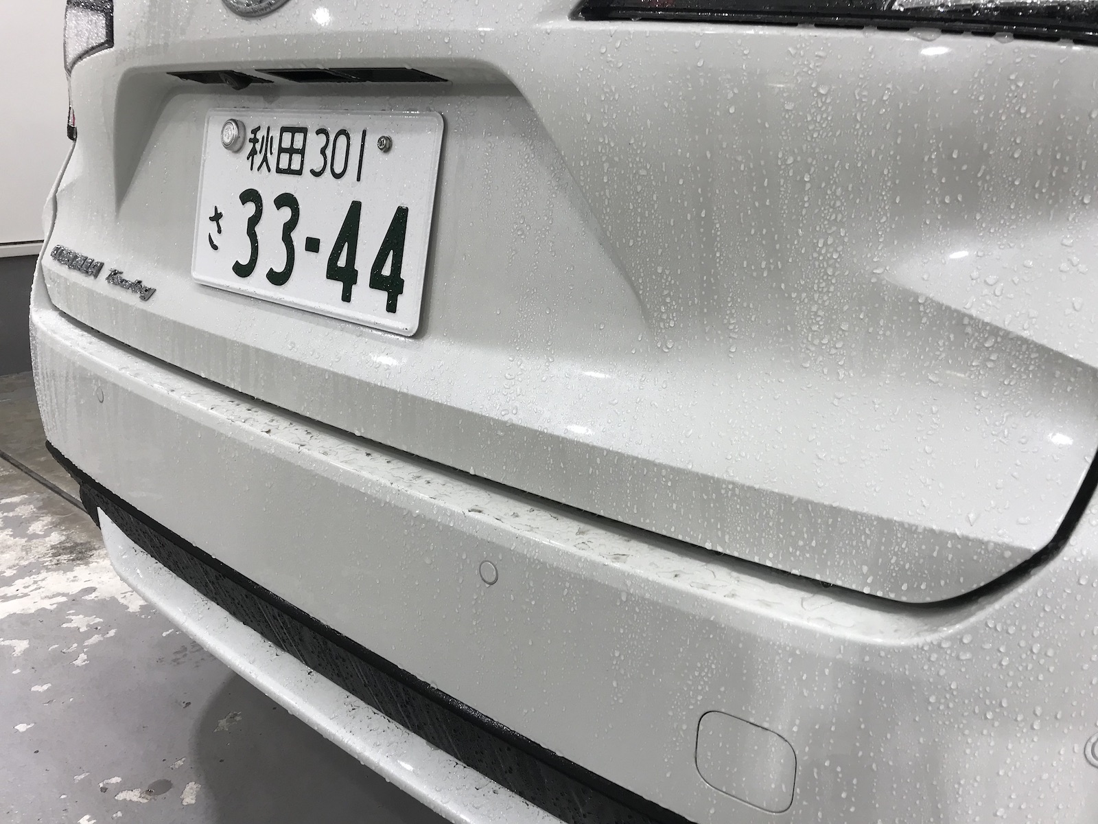 先日、クレンジング洗車をしましたが、汚れも目立ってきましたので、お店が開店する前に洗車しました。カローラツーリングはハッチバックタイプなので、走行中に巻き上げられた汚れがリアゲートやバンパーに付着しやすく、バンパーの上には汚れが溜まってしまいます。
