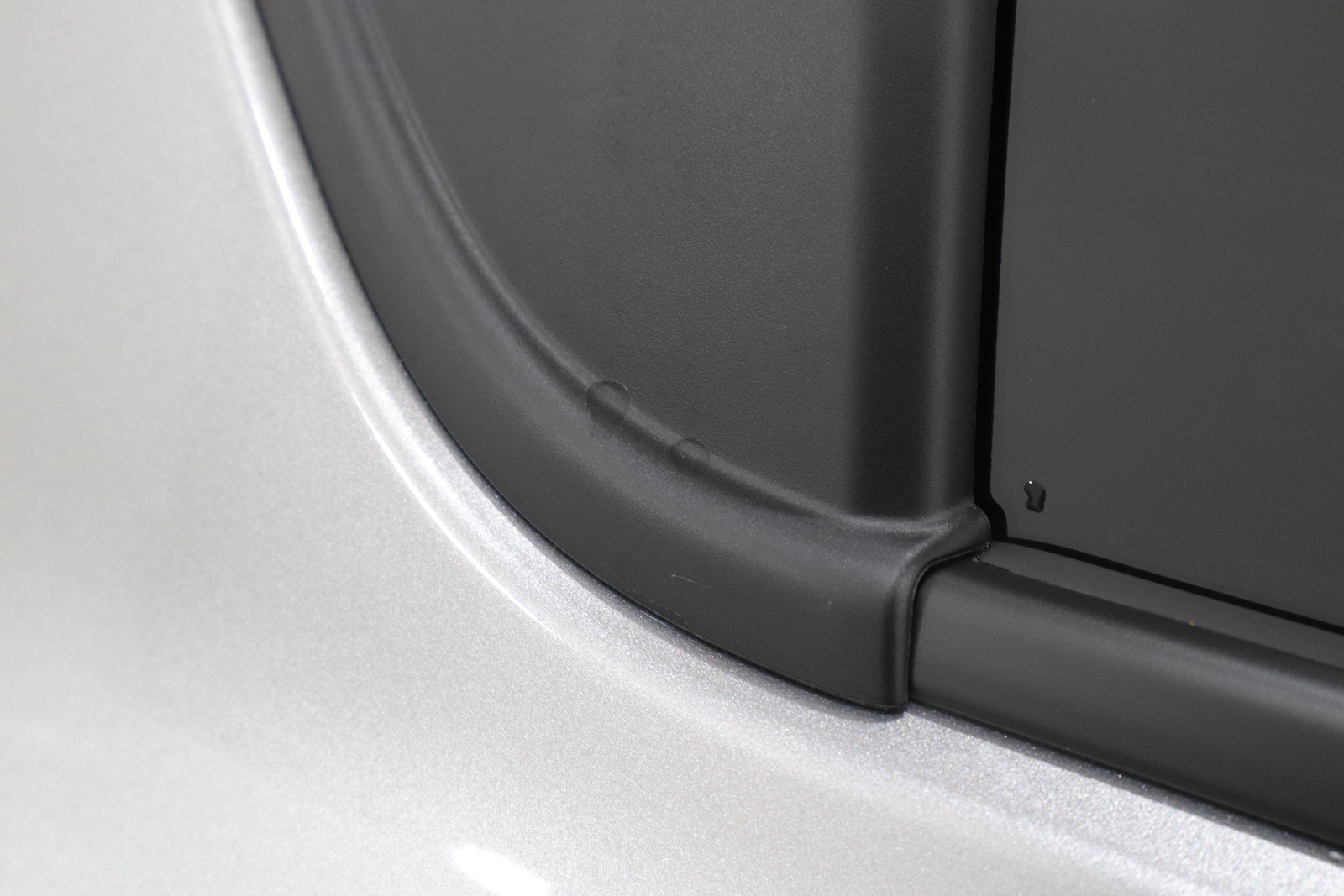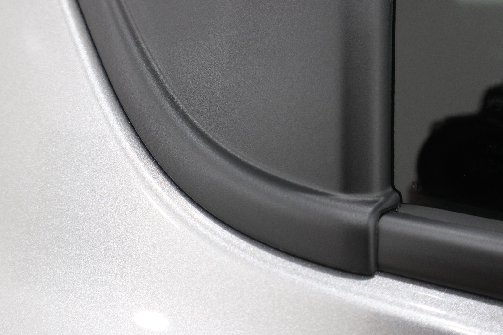 その後、シャンプー洗車では落ちない水ジミや、新車では特に気になる、ドア内部の防錆ワックスなどが垂れた汚れを、それぞれ適した洗剤を使い徹底的に除去してまいります。このような無塗装の樹脂パーツついた水ジミは、研磨して落とすことができませんが、ウォータースポットリムーバーで溶かして、問題なく除去することができます。