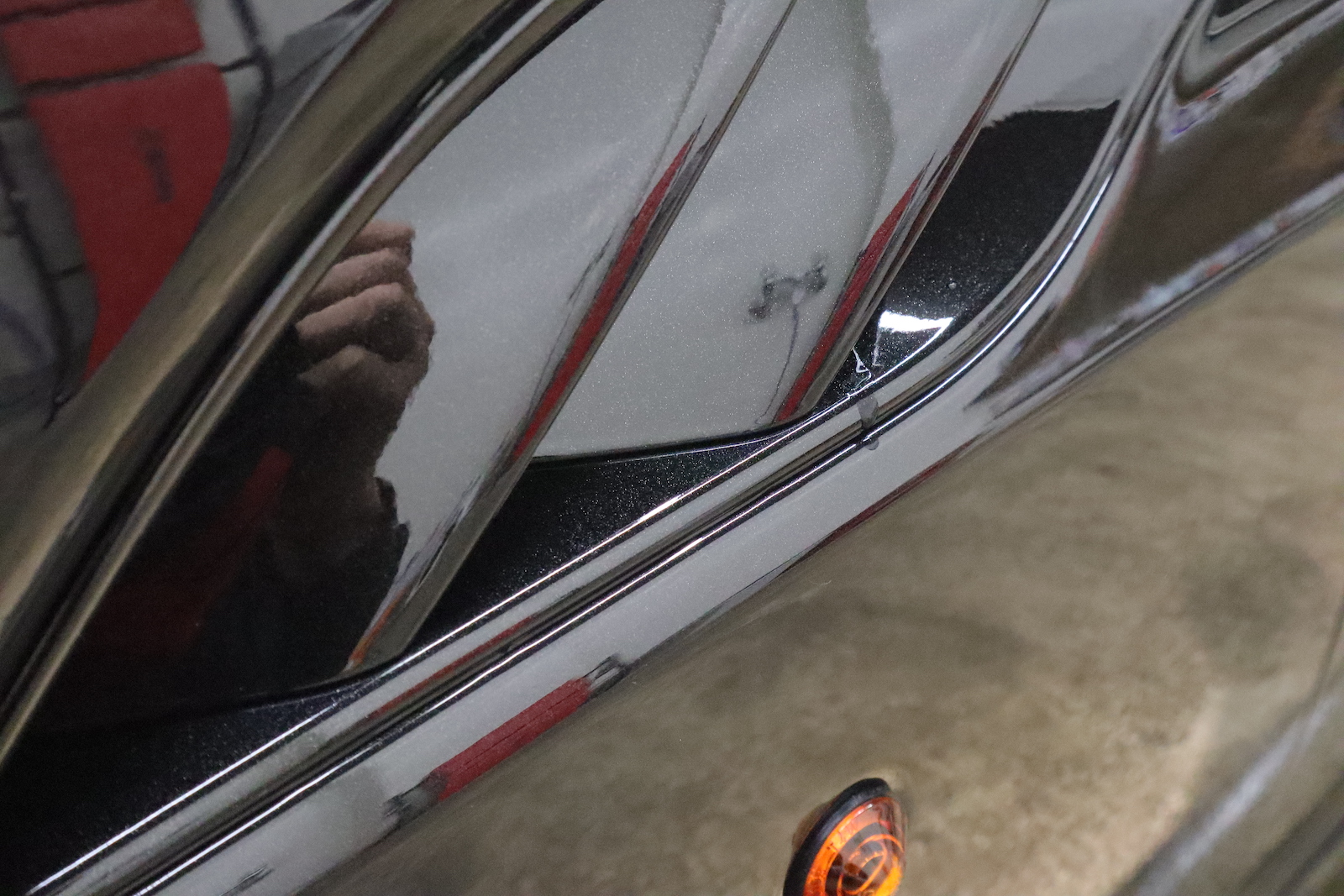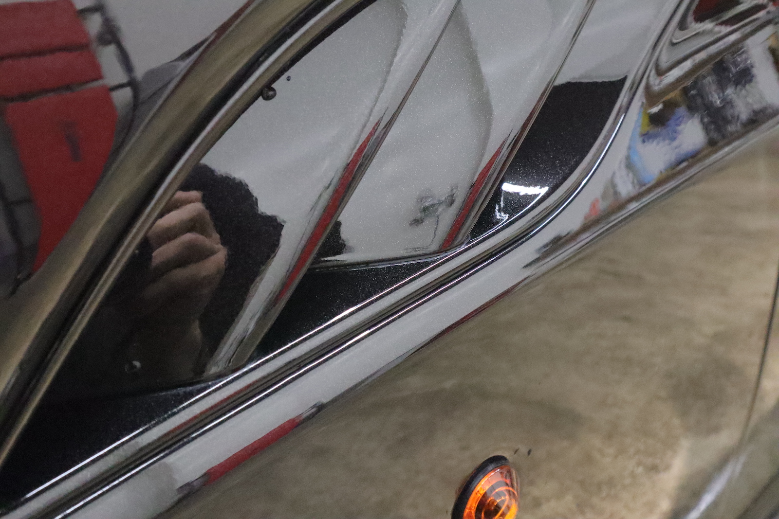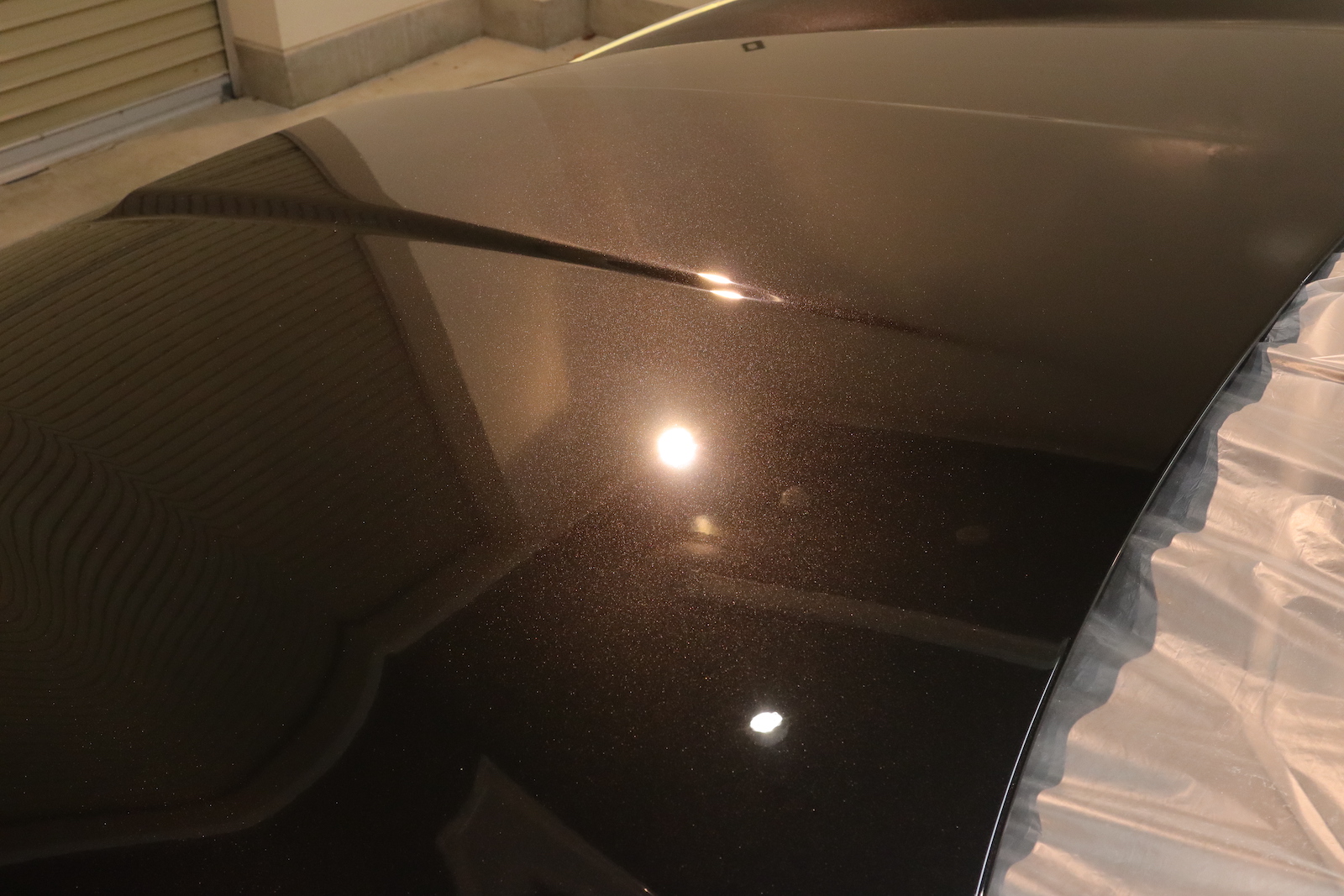 こちらのおクルマは、オーナー様がご購入なさった時からコーティングが施工されている可能性があるとのことで、オーナー様は「もう少し艶が欲しい」と仰っていました。おクルマ全体はキレイな印象でしたが、当店でコーティングの施工をお願いしたいとのことでした。コーティングだけでは、物足りなさを感じてしまうと思いますので、研磨と合わせてのメニューをご提案させていただきました。
