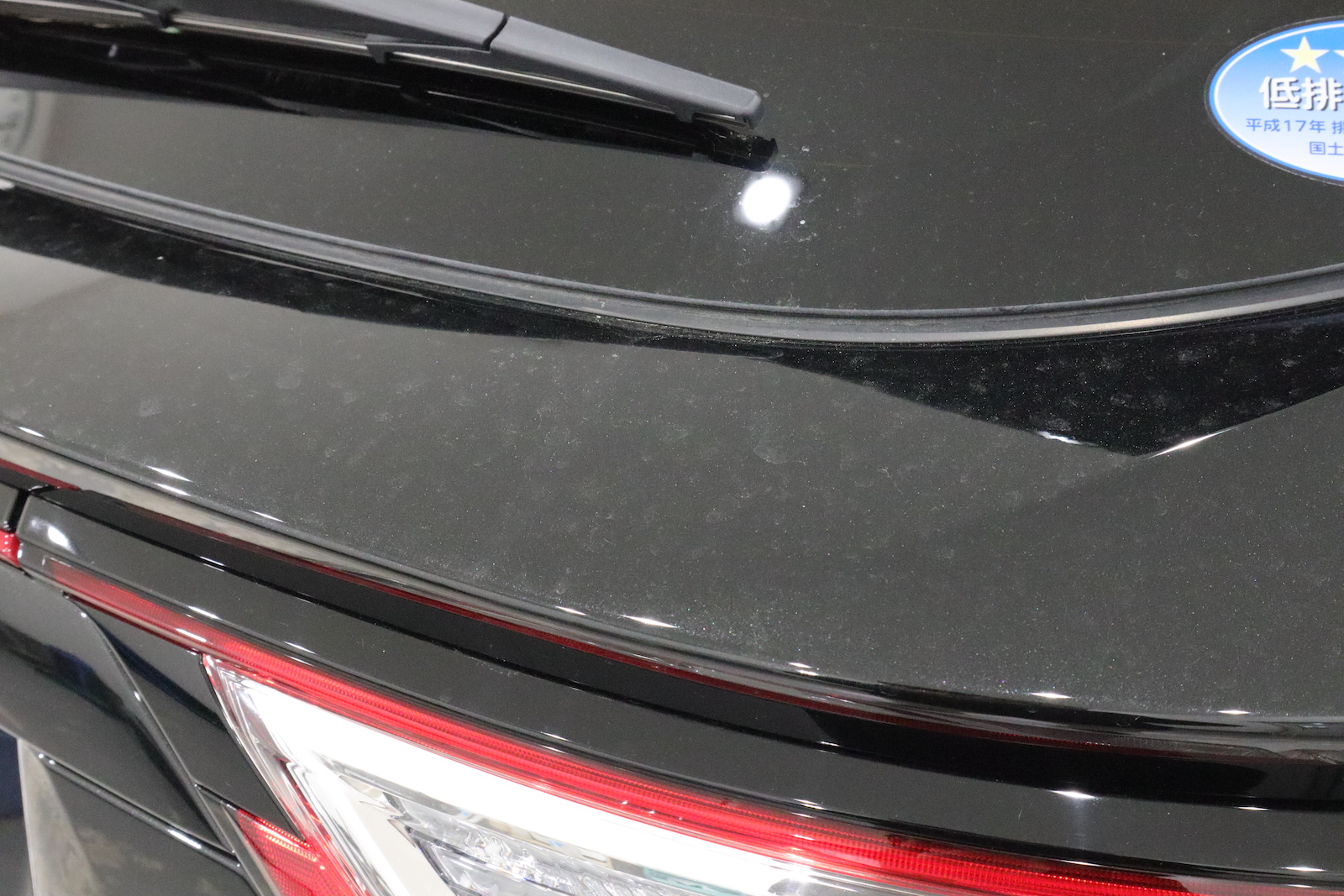 こちらは、塗装面の日焼けを防止するために新車に貼られております、保護フィルムの糊跡です。このような糊跡は、新車でも残ってしまっていることがありますので、タールピッチリムーバーを使い溶かしながら除去してまいります。