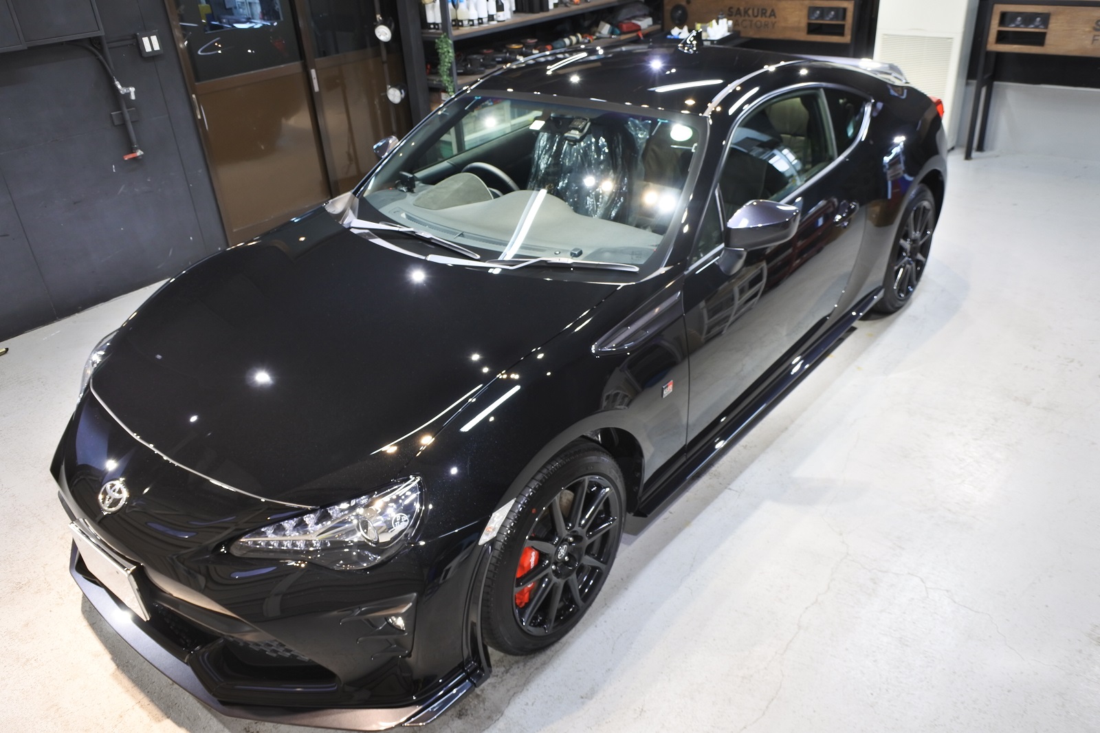 弘前店です。トヨタ 86 GR SPORT 艶出し研磨+コーティング(グロスアーマー)+全面ガラス撥水+ホイールコーティングのご用命でご入庫いただきました。