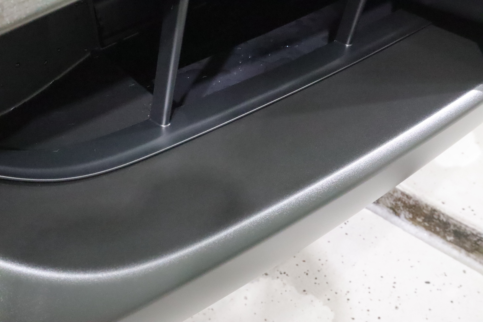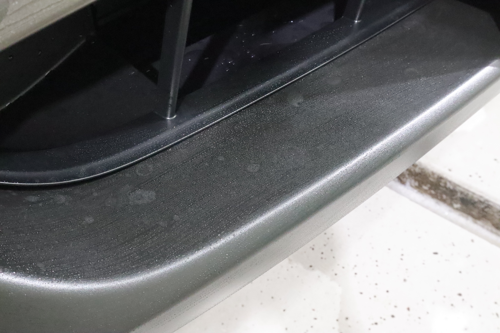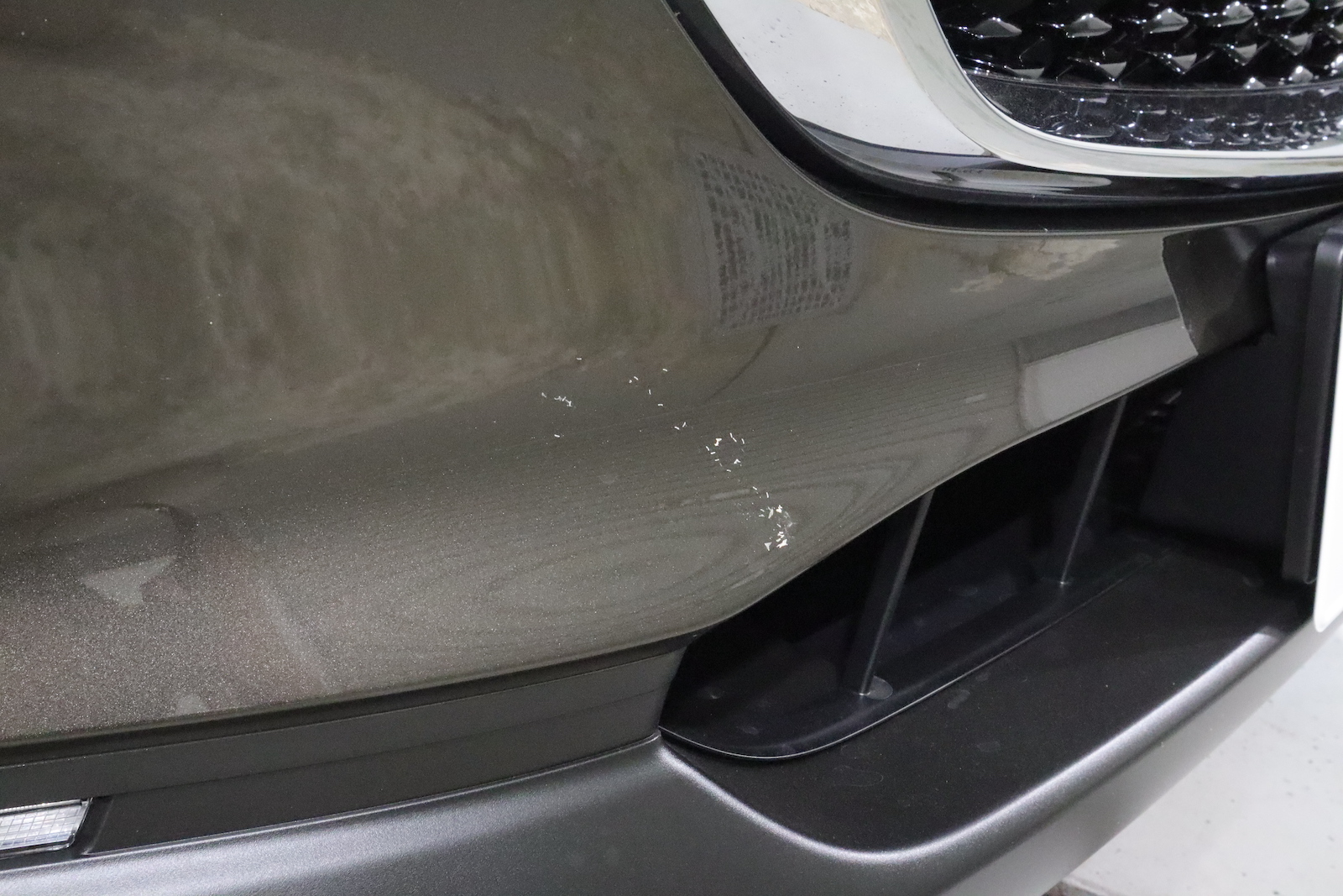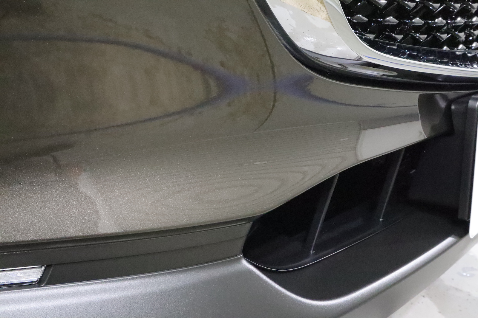 こちらも水ジミが付着しておりました。このようなフロントバンパー下部は、しっかり拭き上げても隙間からポタポタと水道水が垂れてきますので、水ジミが付着してしまいます。水道水をご使用の場合は拭き上げた後にブロワーなど、風の出る道具で水気を飛ばしますと、このようなことが軽減されると思います。もちろん純水であれば大丈夫です。