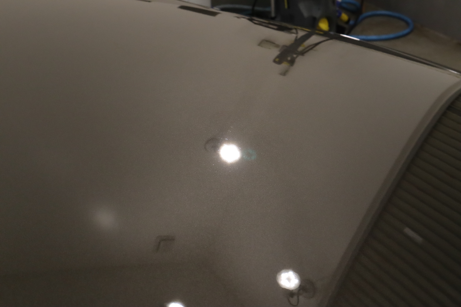 こちらは、ボンネットに付着しておりました水ジミです。水ジミを溶かしながら除去してまいります。