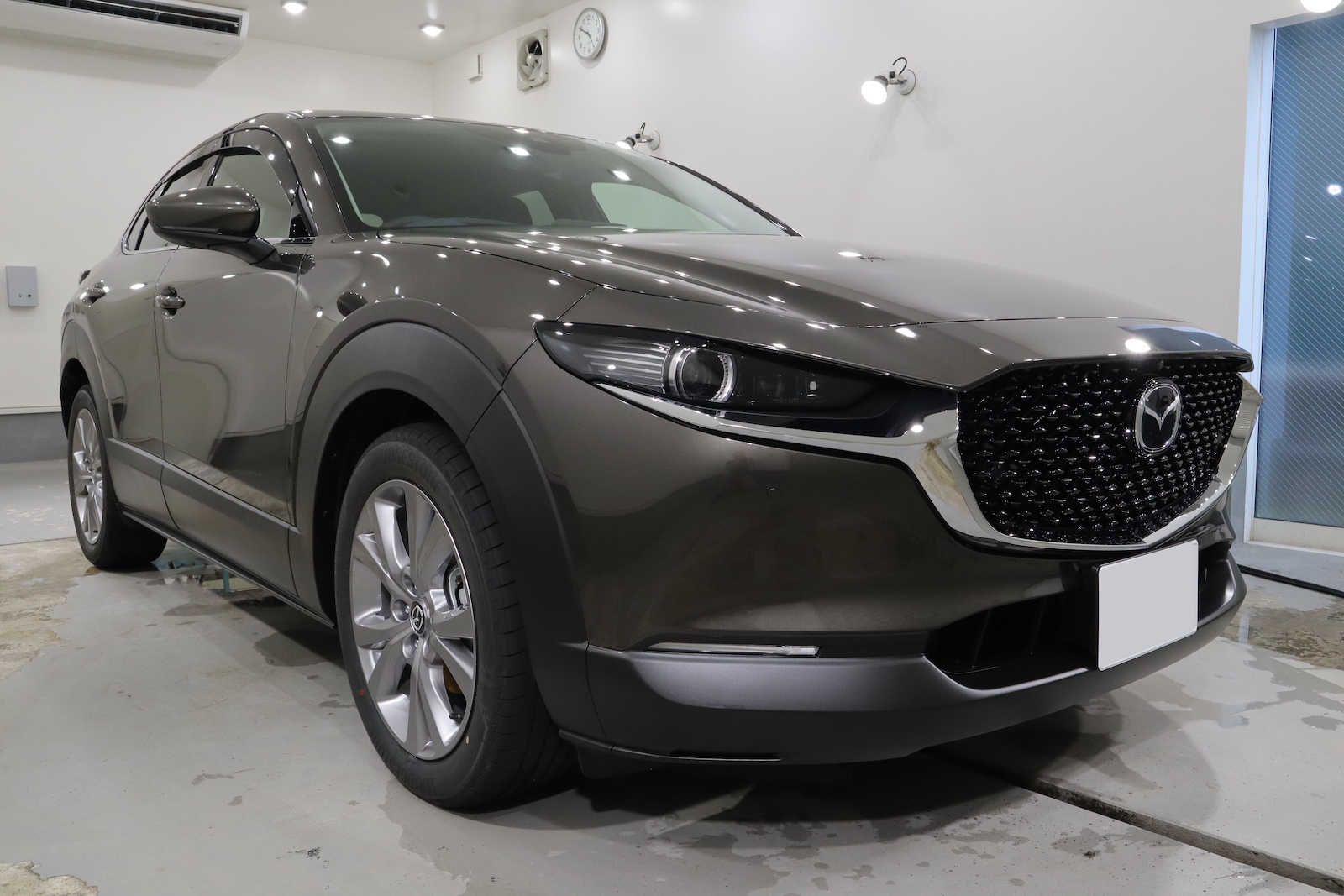 本店です。マツダ CX-30 極艶ビューティフルコートのご用命でご入庫いただきました。