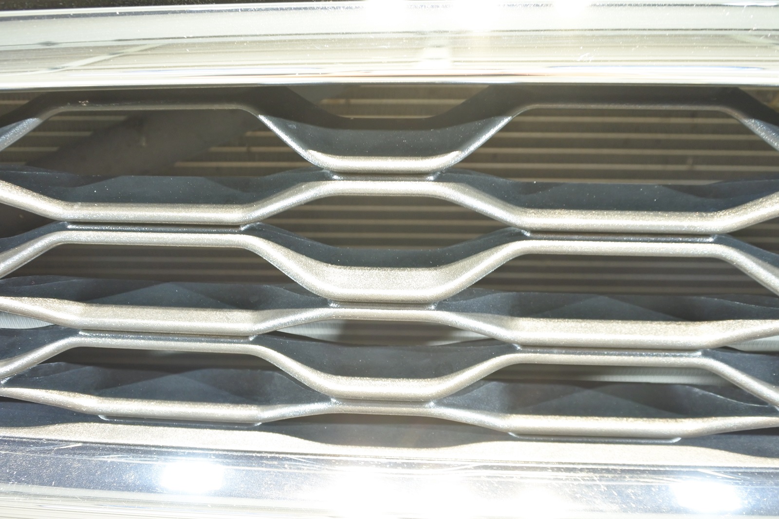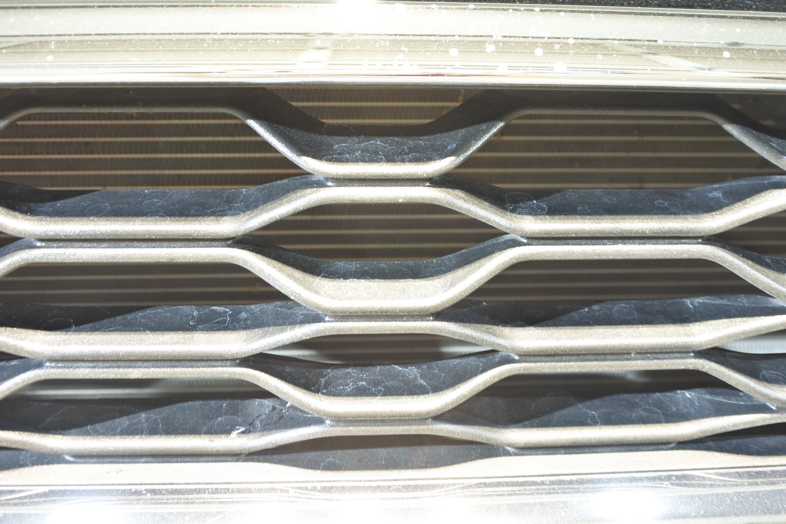 フロントグリルの部分に水ジミがたくさんついておりましたが、ウォータースポットリムーバーを使いキレイに除去いたしました。