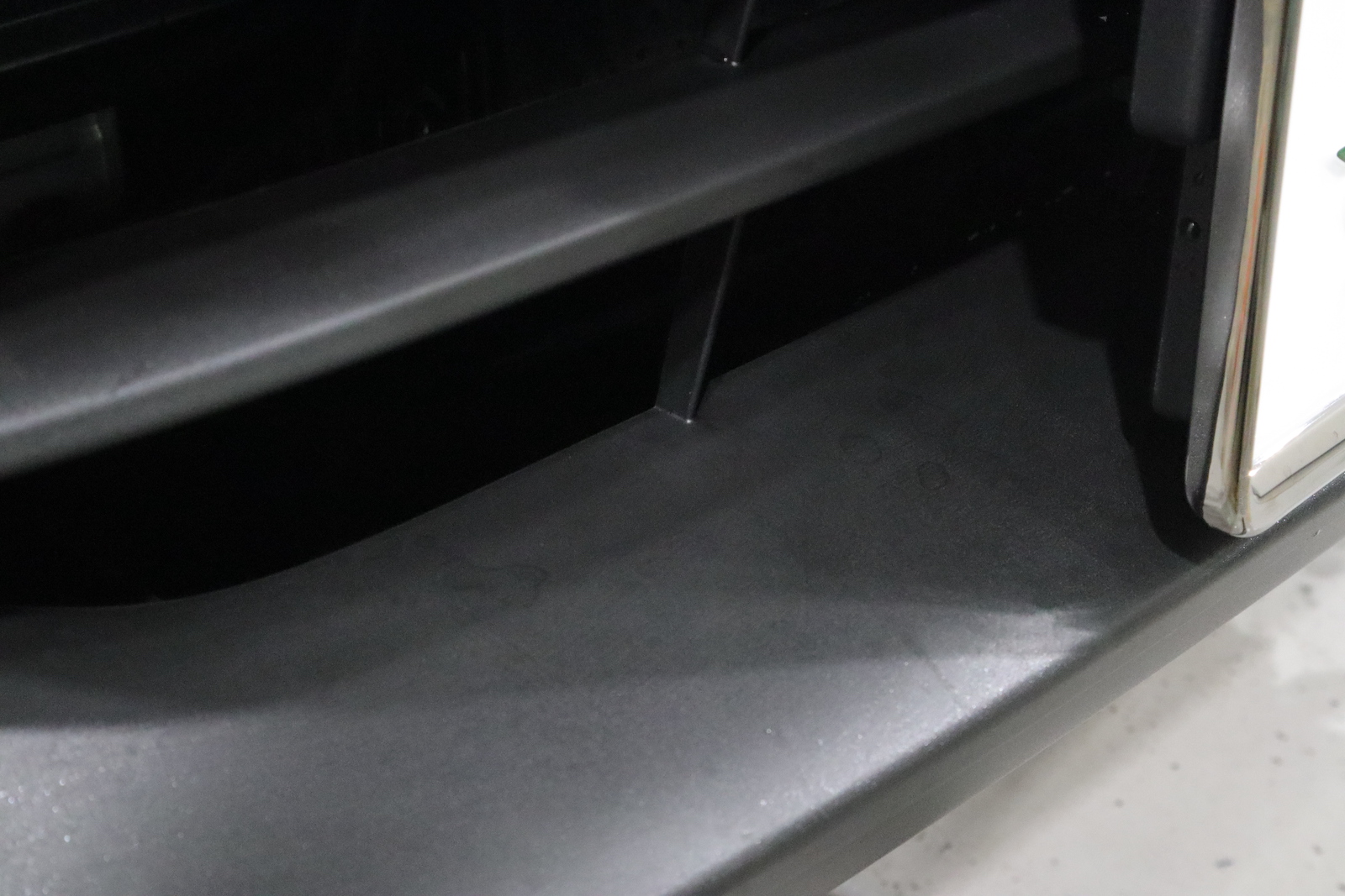 こちらのフロントバンパー下部にも水ジミが付着しておりました。このような部分はしっかり拭き上げをしても、後からポタポタと水道水が垂れてきますので水ジミが付いてしまいます。純水を使用した場合ですと、このように水ジミが付着してしまうこともなくなります。
