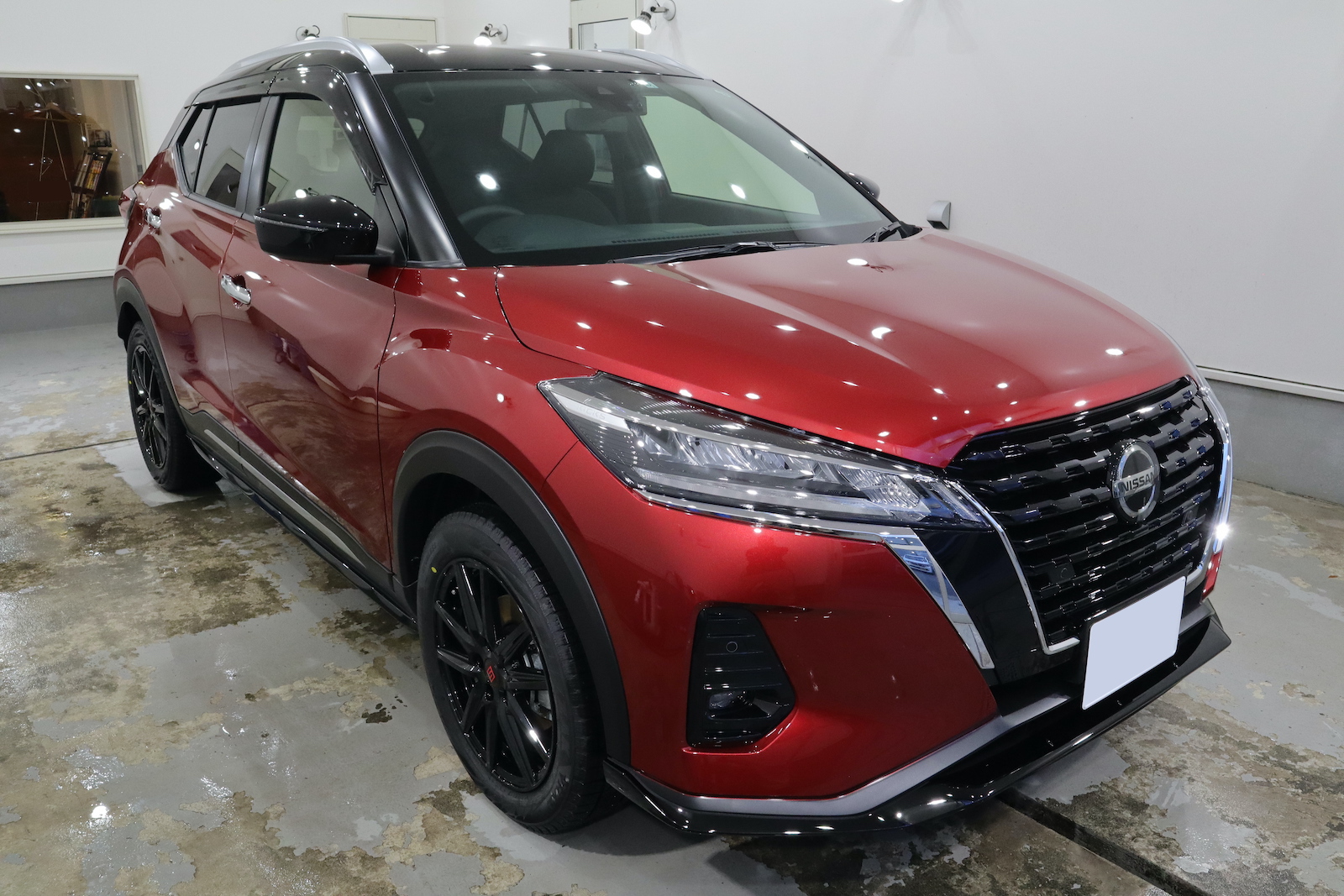 本店です。日産 キックス 極艶ビューティフルコートのご用命でご入庫いただきました。