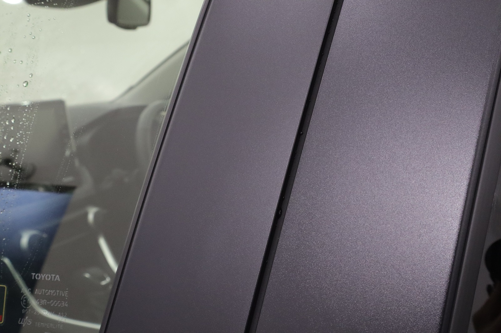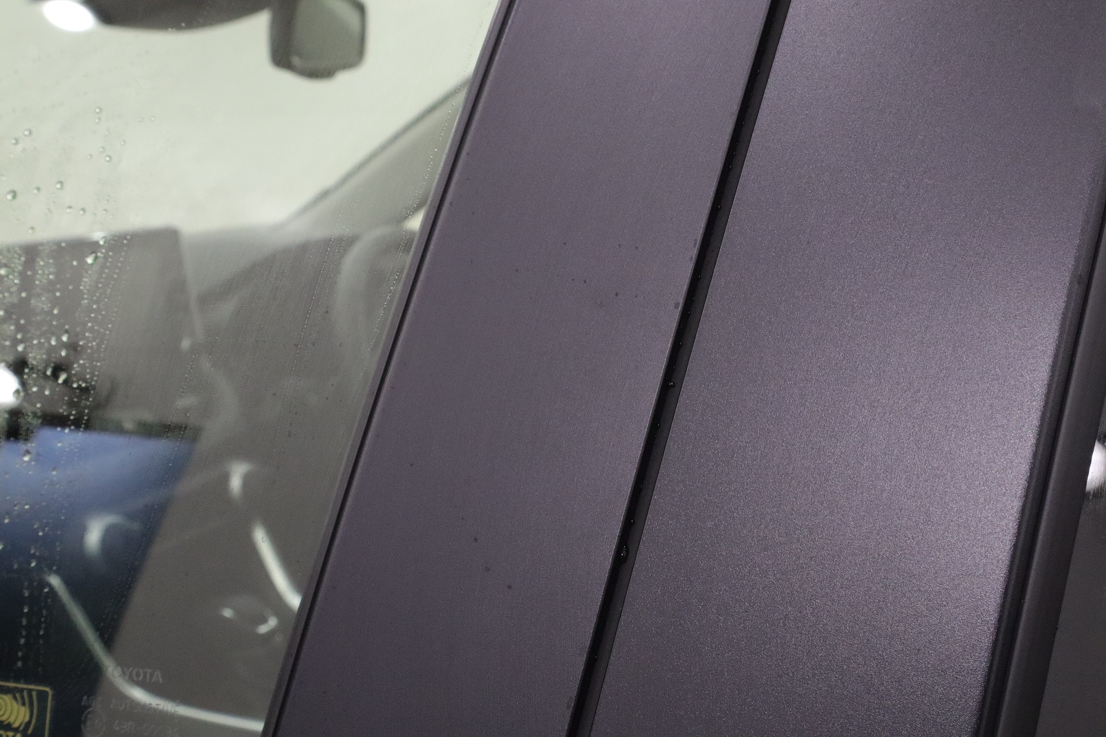最初のシャンプー洗車でおクルマ全体がキレイになりましたが、わずかながらピラーの樹脂パーツに水ジミが付着しておりました。樹脂パーツは汚れの蓄積しやすい箇所になります。さらに無塗装箇所になり、研磨をすることができませんので、固着する前に早めに除去してまいります。