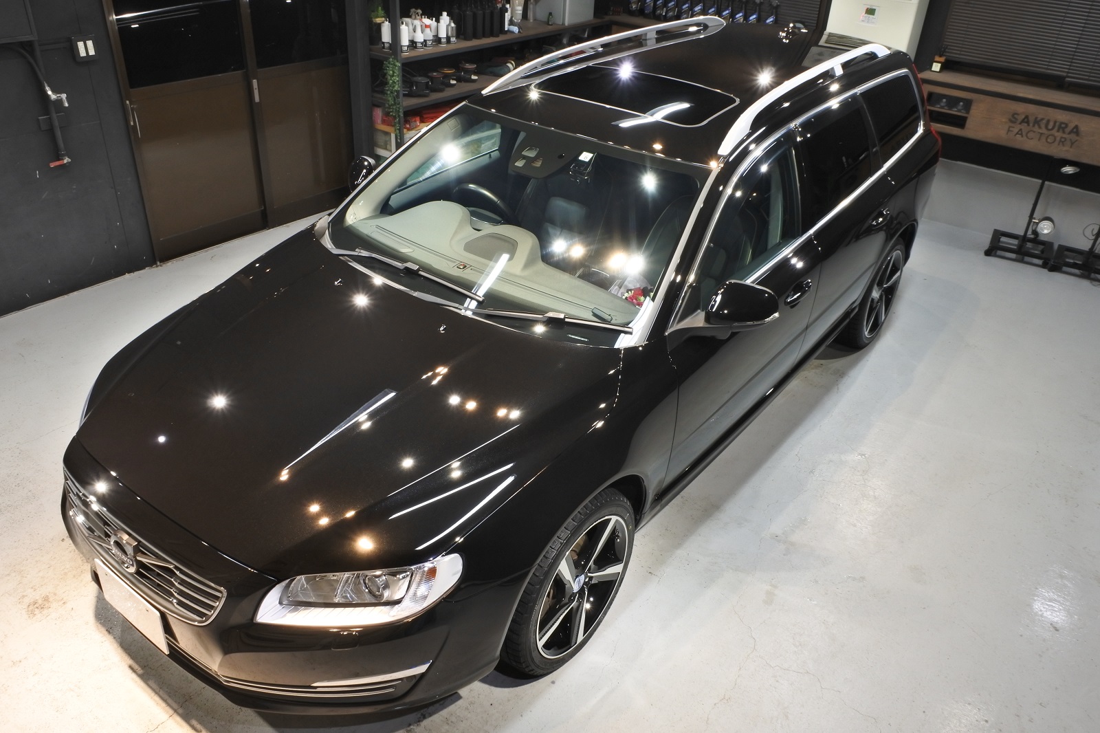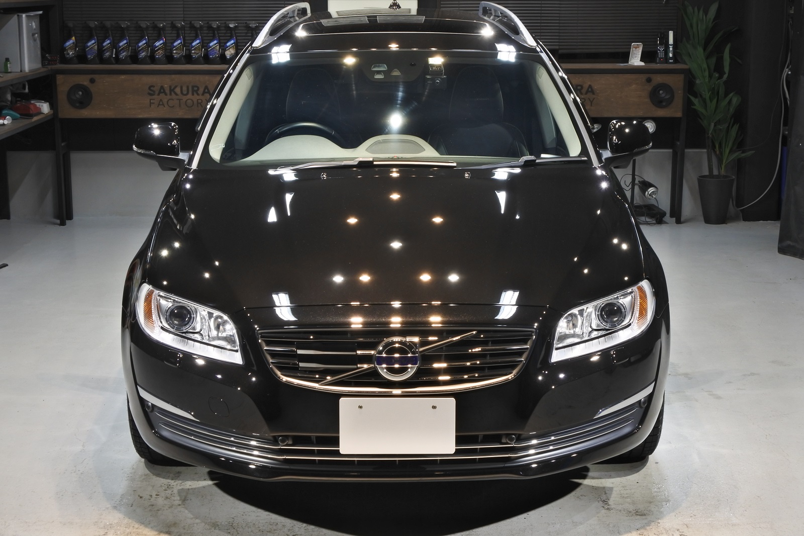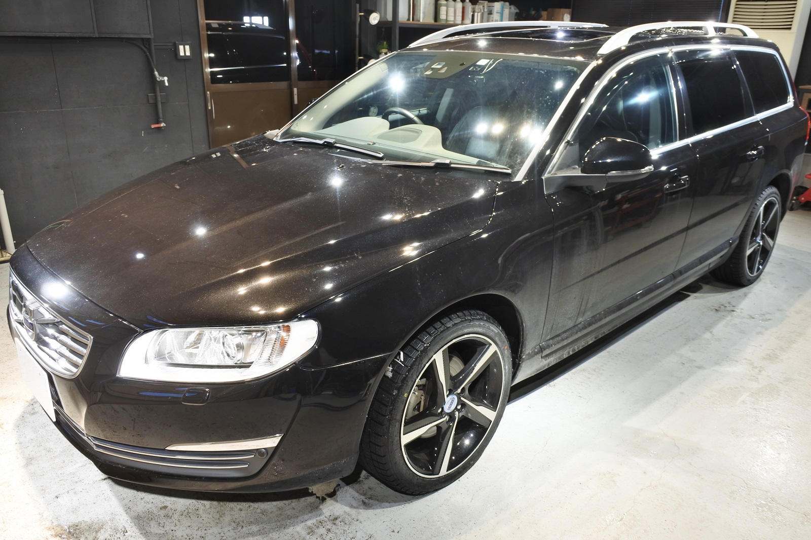 青森・弘前店受付担当の三上です。ボルボV70軽研磨+グロスアーマーのご用命でご入庫いただきました。