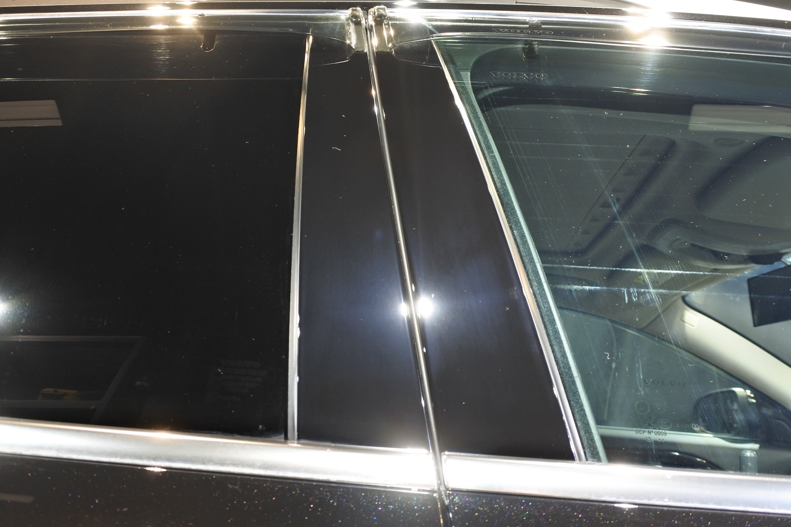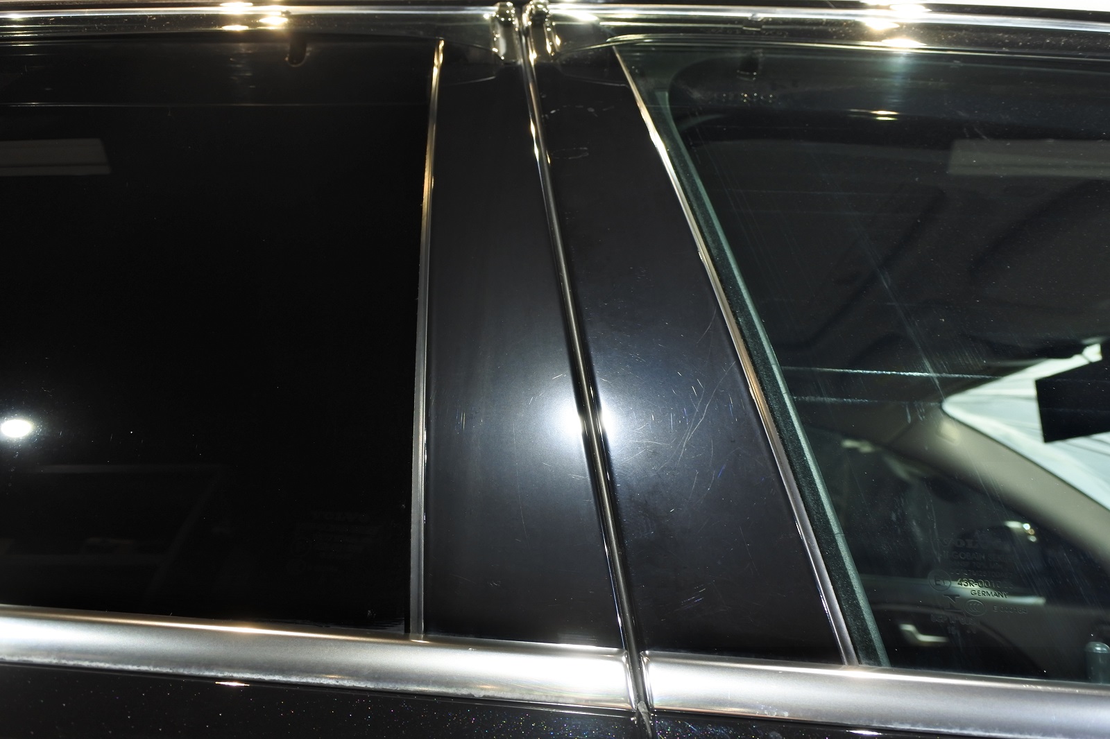 こちらはピアノブラックのピラー部分です。洗車キズやドアの開け閉めの際についたと思われるキズがたくさん見られます。